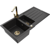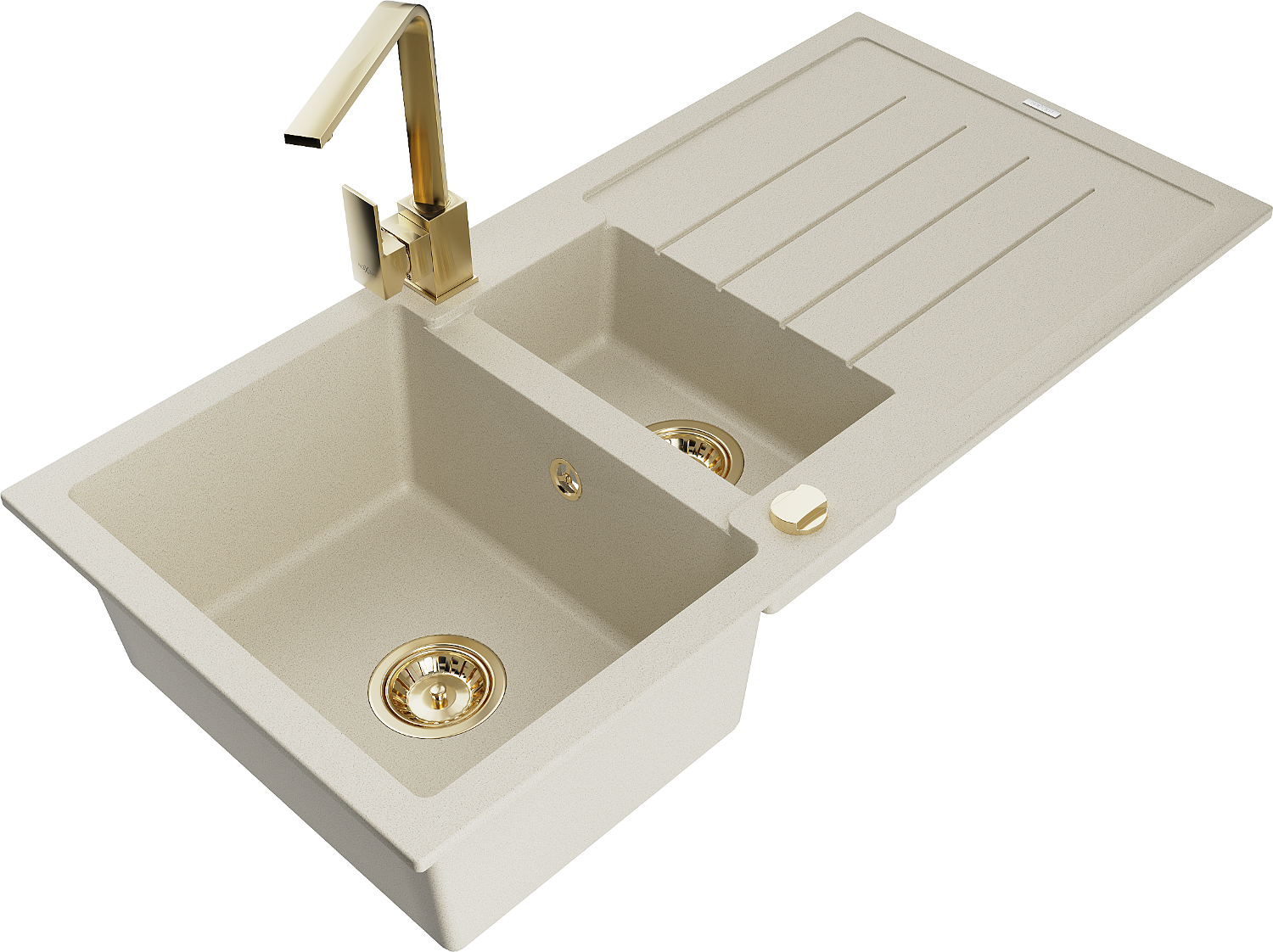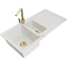 Mexen Andres évier en granit 1,5 bac avec égouttoir et robinet de cuisine Rita, beige - 6515-69-670300-50
