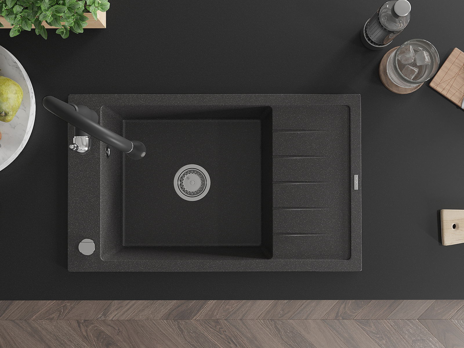 L'évier a été fabriqué en granit de haute qualité. Il constitue un complément élégant et surtout pratique à toute cuisine, quel que soit son style. La haute qualité et la durabilité du granit garantissent une utilisation pendant de nombreuses années.