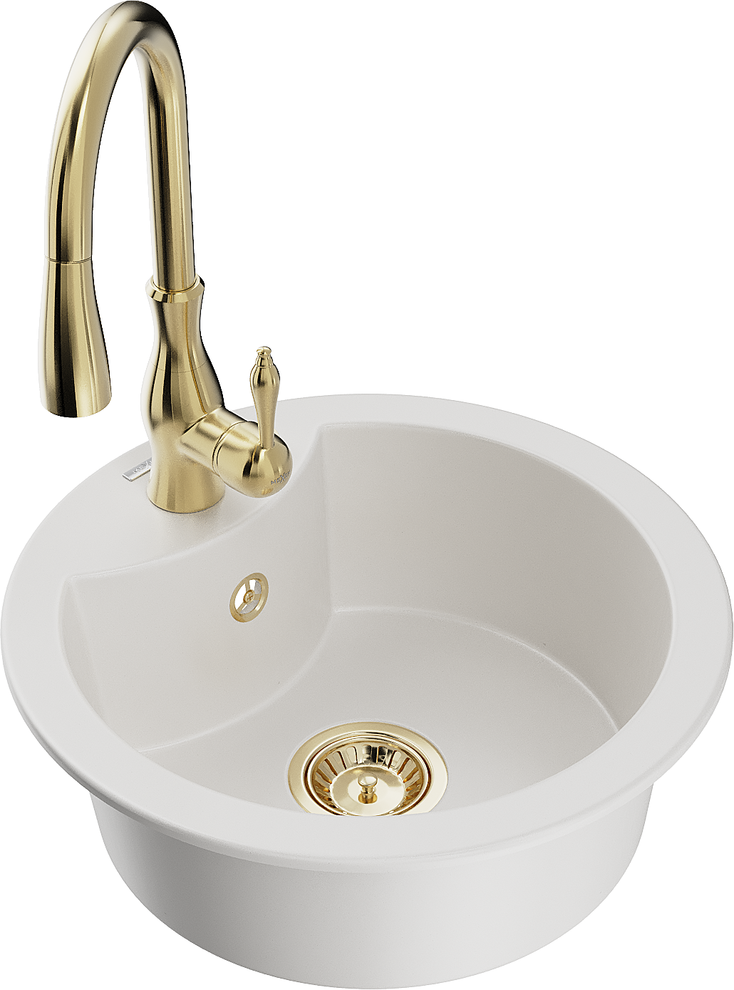 Mexen Diego évier en granit 1 bac avec robinet de cuisine Savita, blanc - 6512-20-672601-50