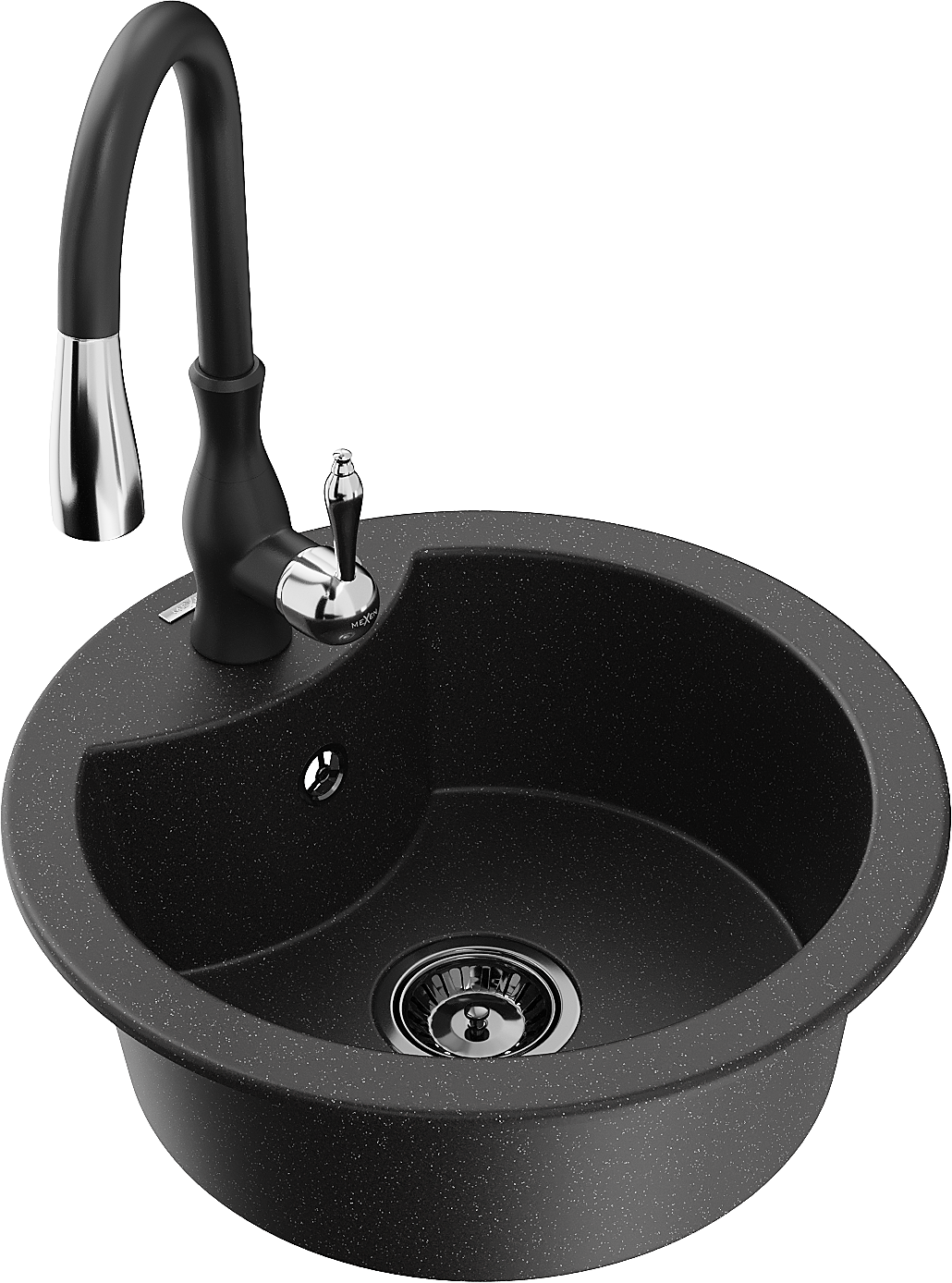 Mexen Diego évier en granit 1 bac avec mitigeur de cuisine Savita, noir/métallisé argenté - 6512-73-672601-70-B