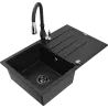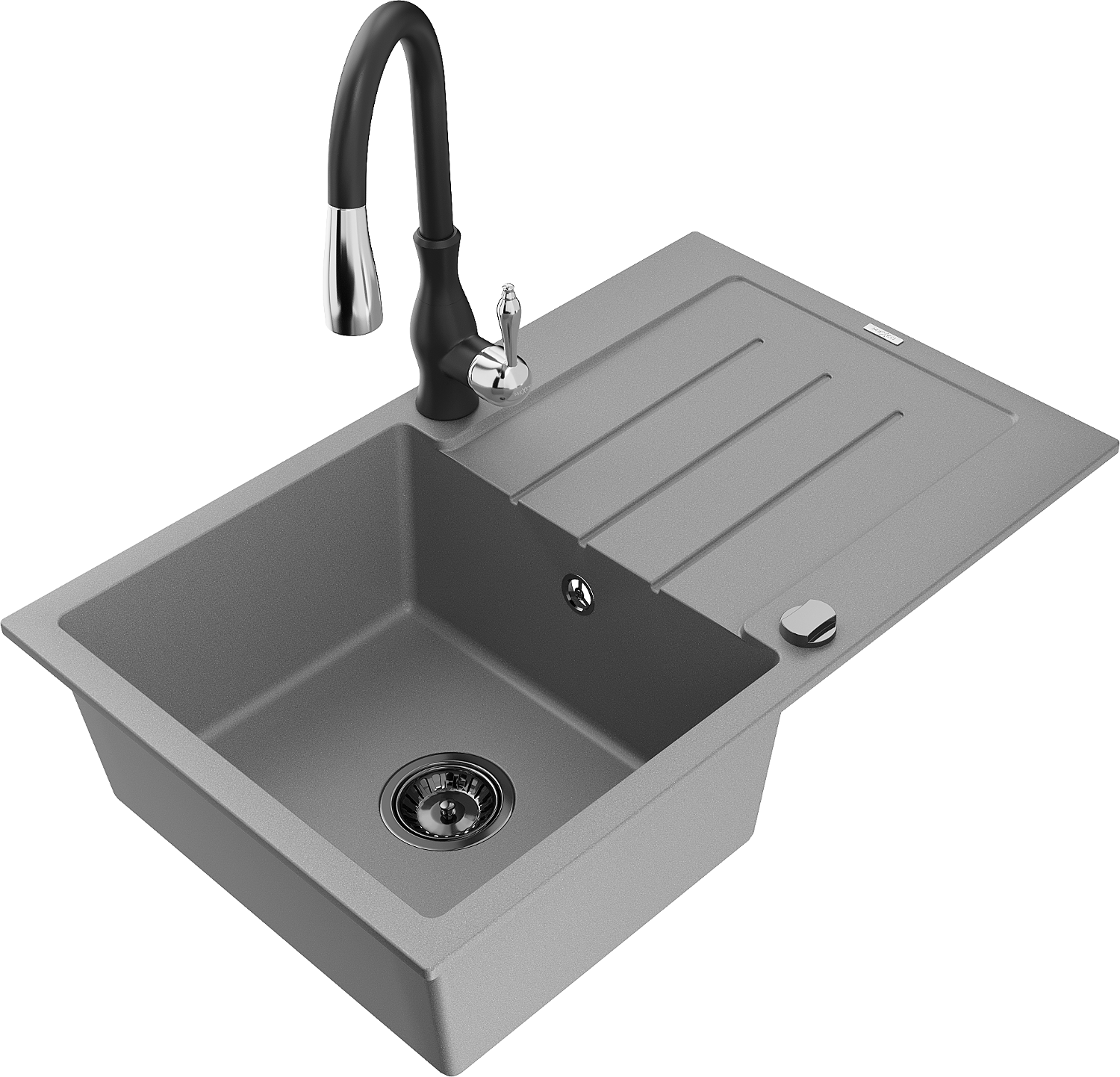 Mexen Bruno évier en granit 1 bac avec égouttoir et robinet de cuisine Savita, gris - 6513-71-672601-70-B
