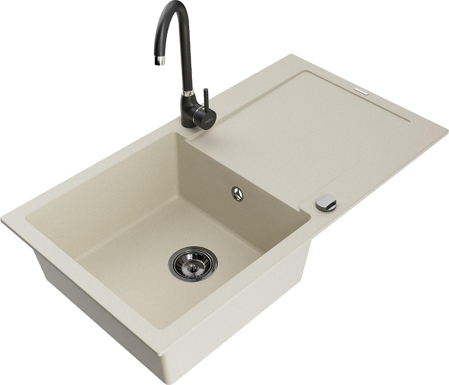 Mexen Leo évier en granit 1 bac avec égouttoir et robinet de cuisine Telma, beige - 6501-69-670200-70
