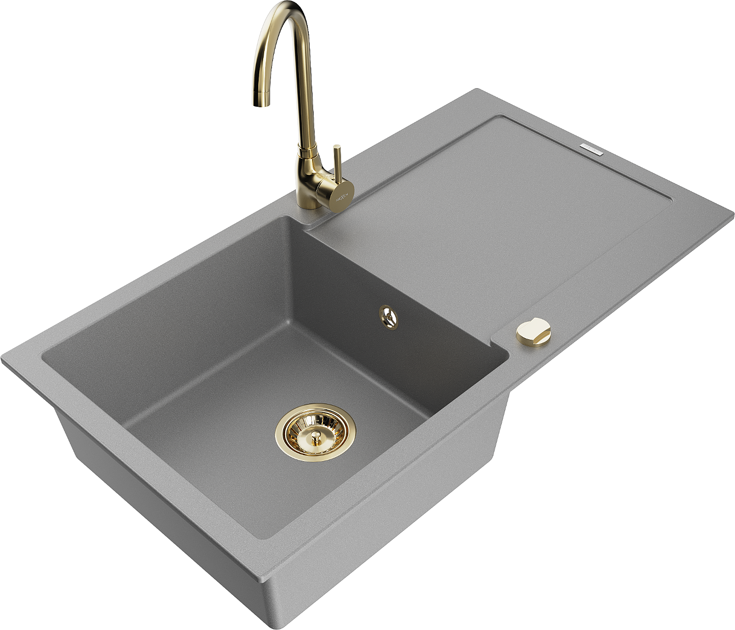Mexen Leo évier en granit 1 bac avec égouttoir et robinet de cuisine Telma, gris - 6501-71-670200-50