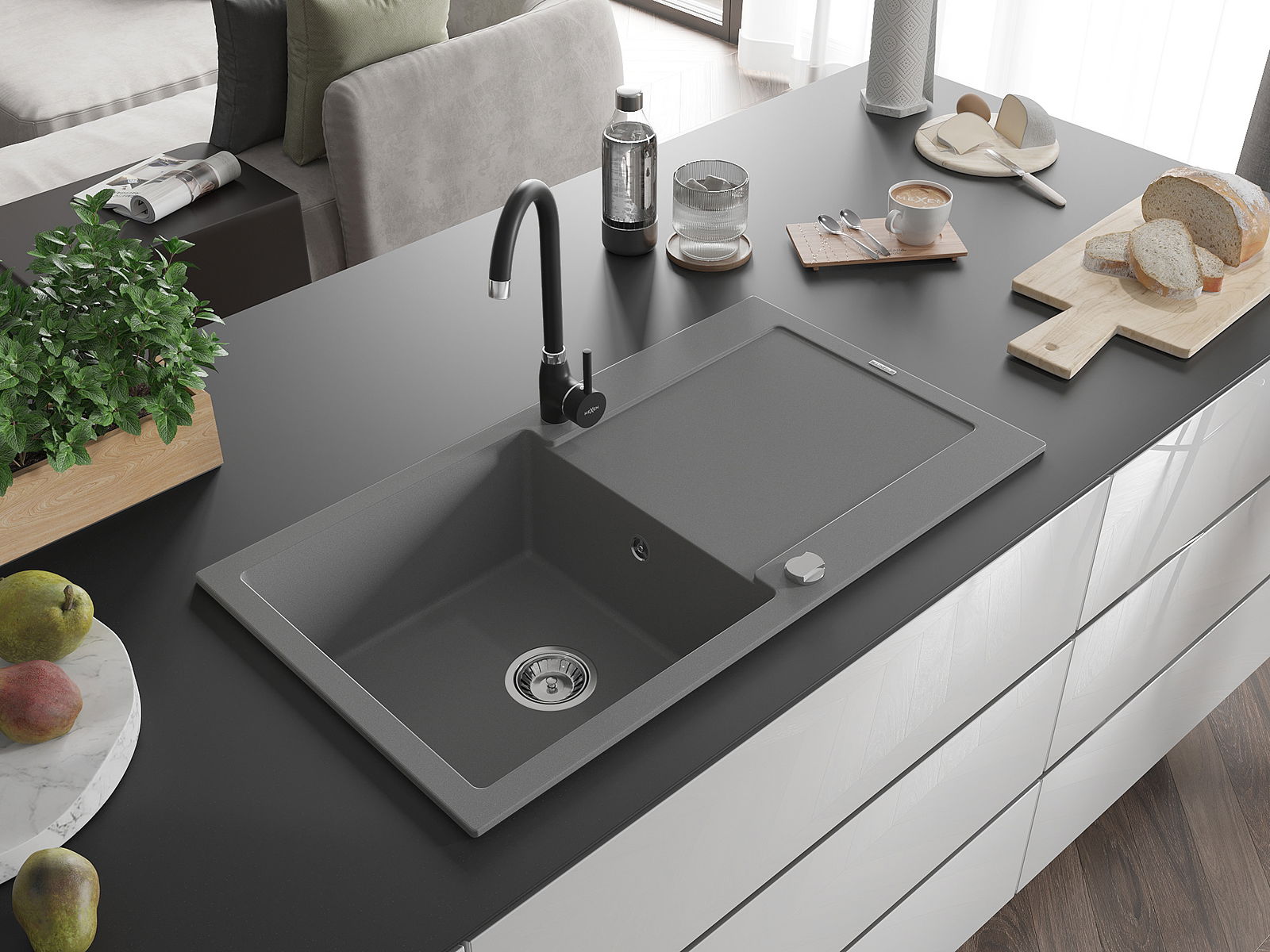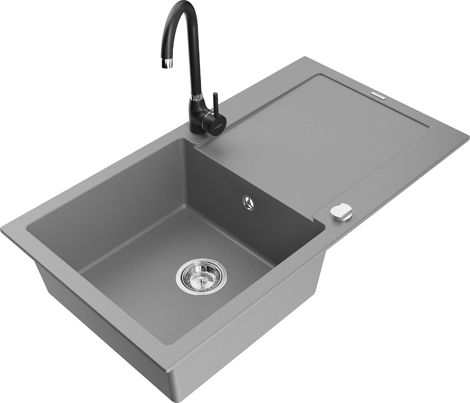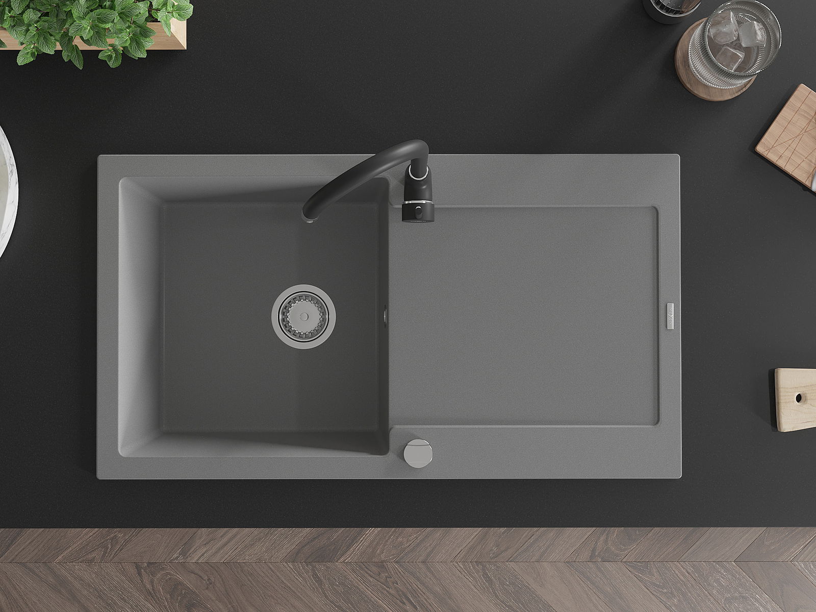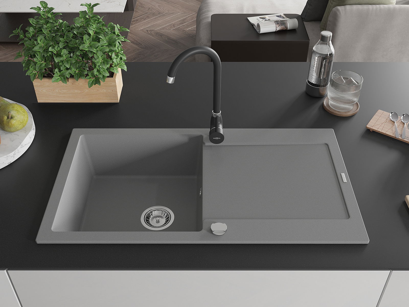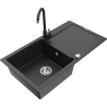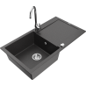 Mexen Leo évier en granit à 1 bac avec égouttoir et robinet de cuisine Telma, gris - 6501-71-670200-70