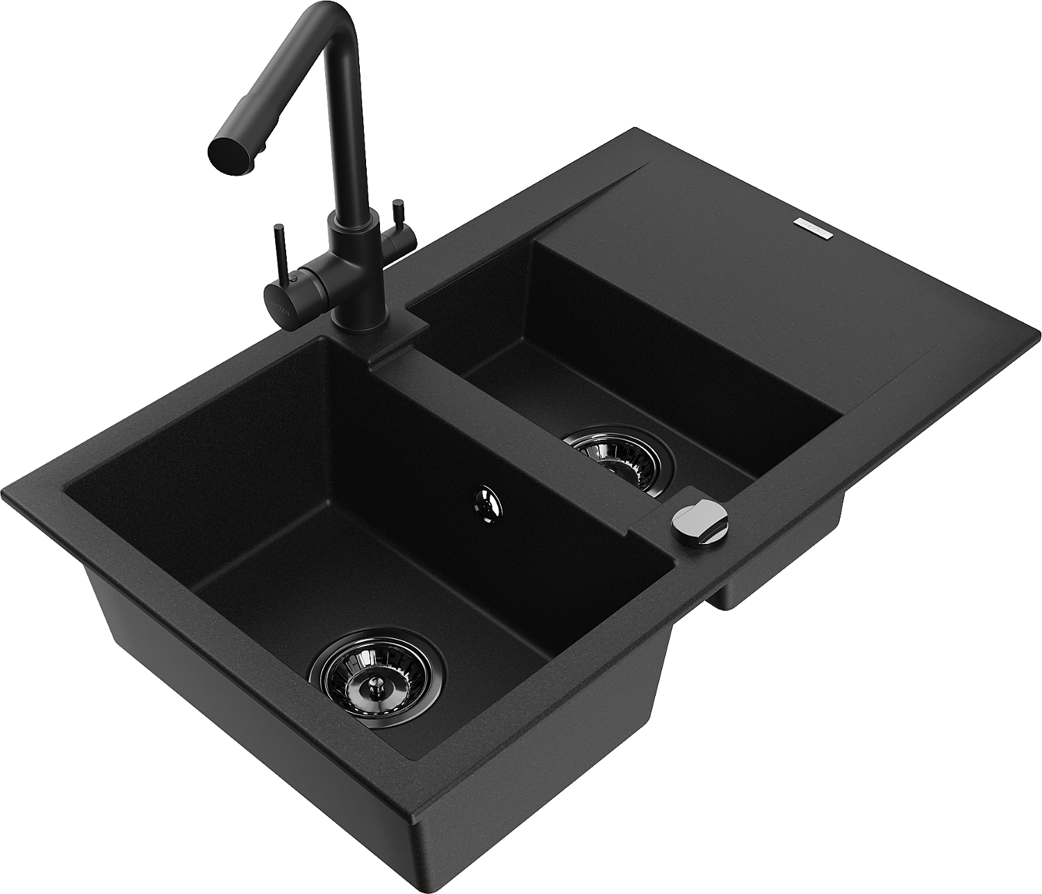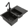 Mexen Gaspar évier en granit 1,5 bac avec égouttoir et robinet de cuisine Duero, noir - 6507-77-671600-70-B