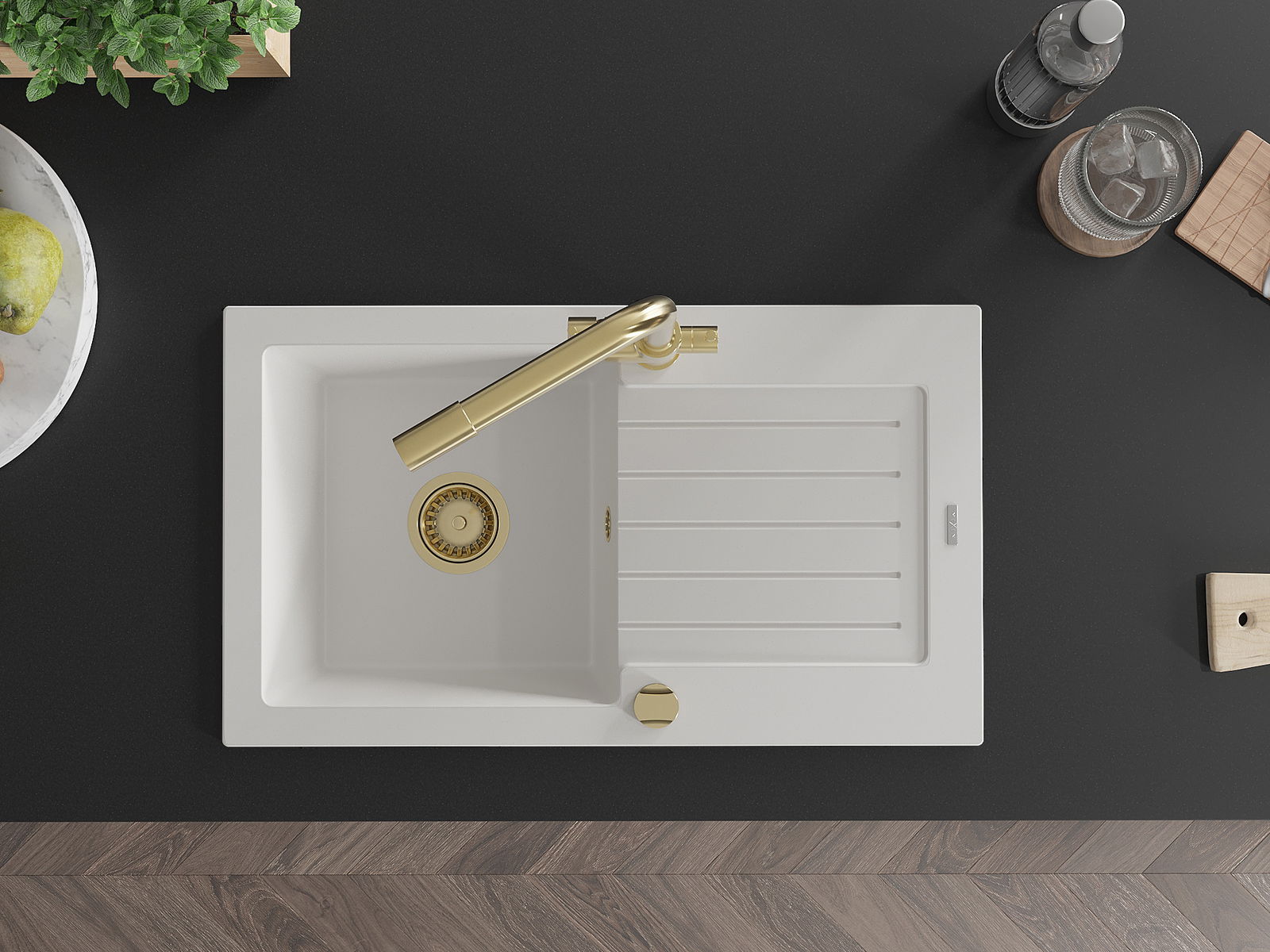 Mexen Pablo évier en granit à 1 bac avec égouttoir et robinet de cuisine Duero, blanc - 6510-20-671600-50