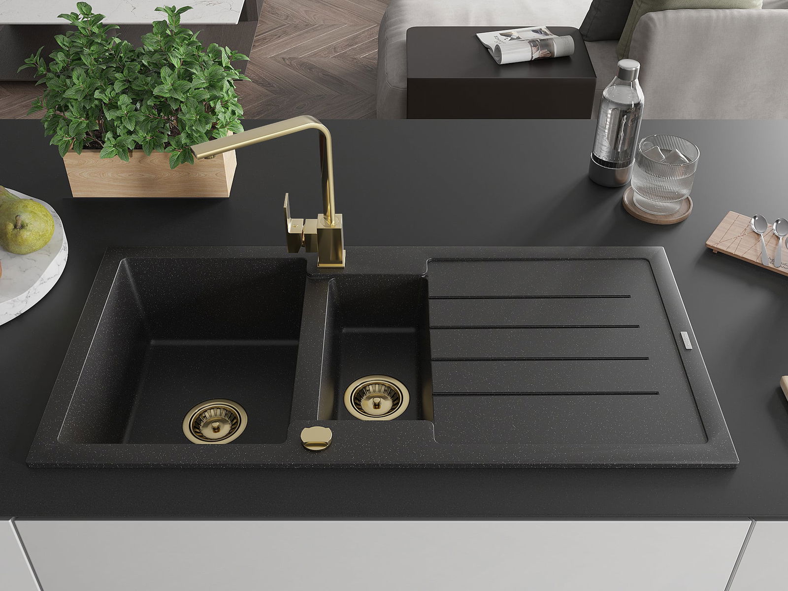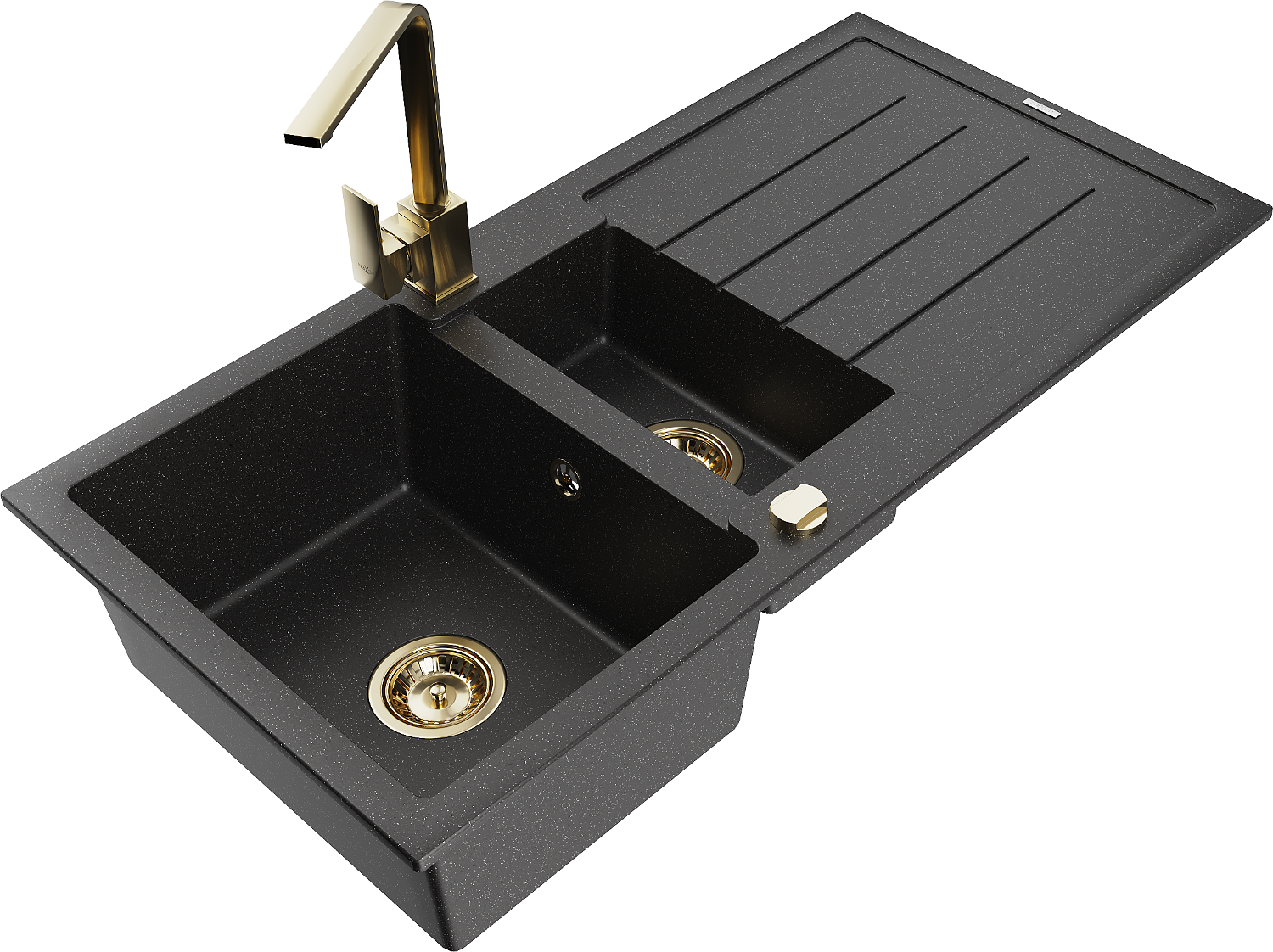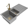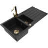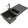 Mexen Andres évier en granit 1,5 bac avec égouttoir et robinet de cuisine Rita, noir/argent métallisé - 6515-73-670300-50