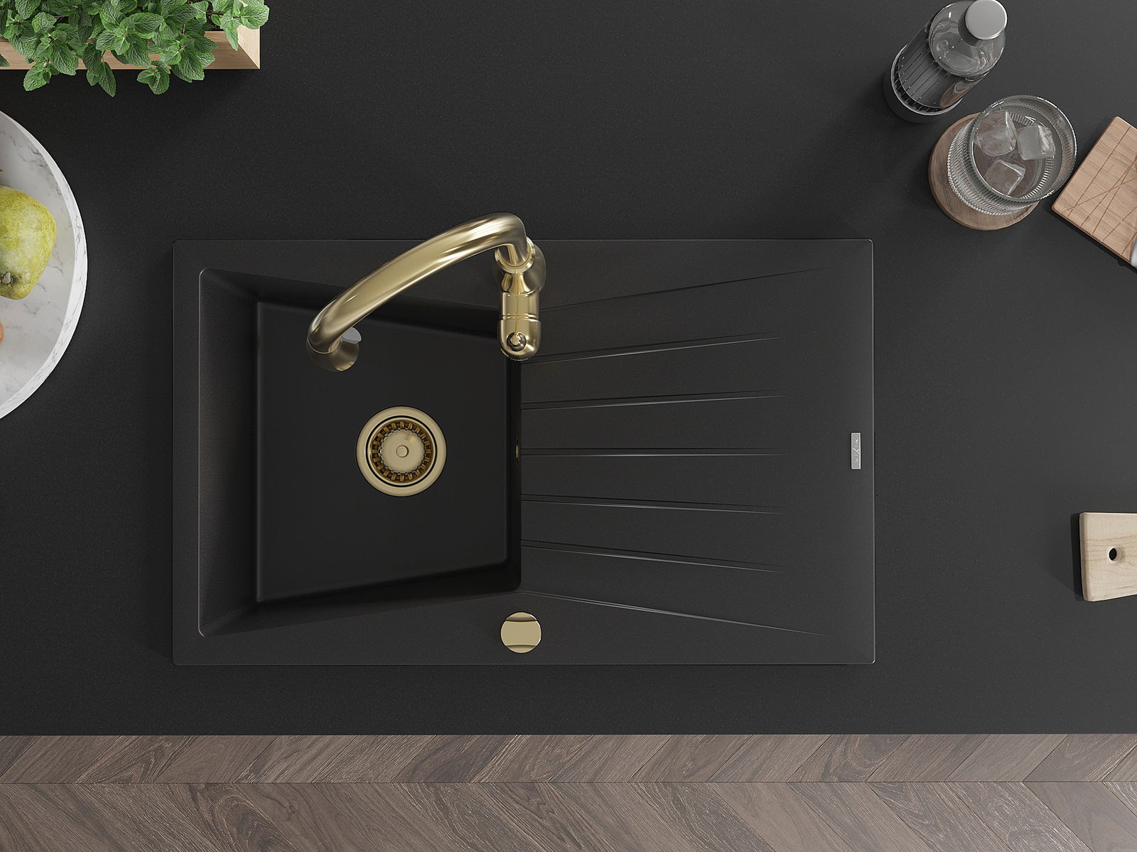 Mexen Cesar évier de cuisine en granit à 1 bac avec égouttoir et robinet de cuisine Savita, noir - 6514-77-672601-50