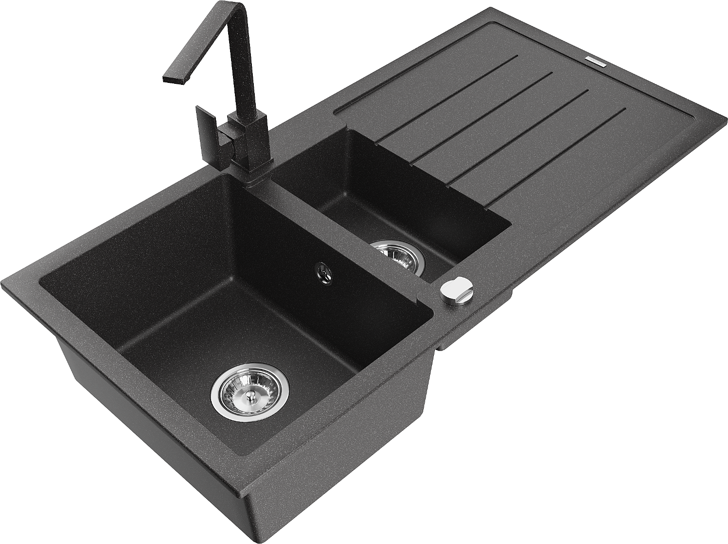Mexen Andres évier en granit 1,5 bac avec égouttoir et mitigeur Rita, noir moucheté - 6515-76-670300-76