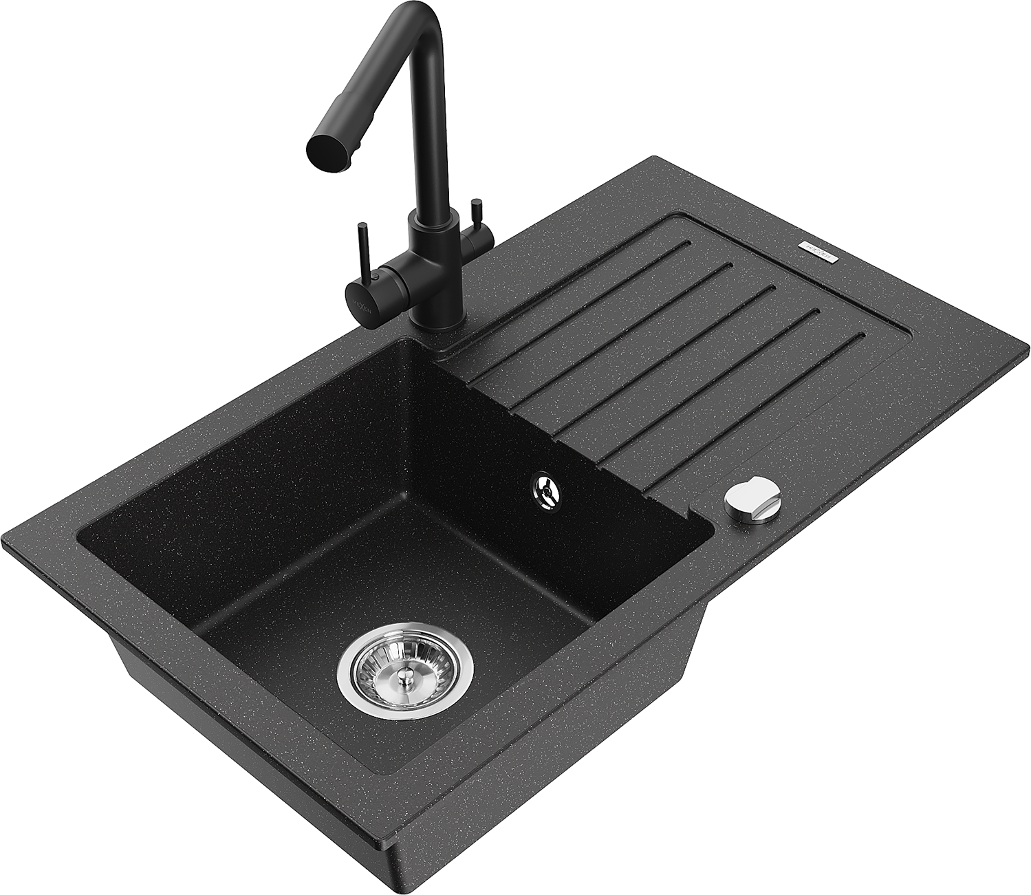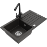 Mexen Pablo évier en granit à 1 bac avec égouttoir et robinet de cuisine Duero, noir/argent métallisé - 6510-73-671600-70
