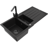 Mexen Andres évier en granit 1,5-bac avec égouttoir et robinet de cuisine Rita, noir - 6515-77-670300-70-B