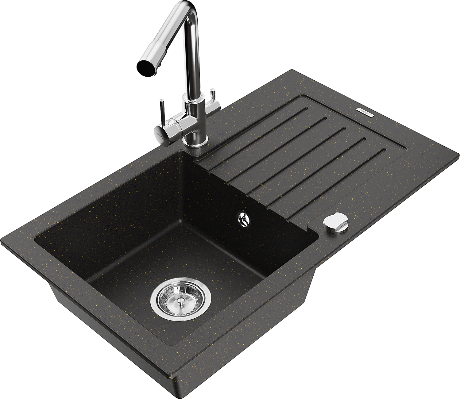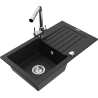 Mexen Pablo évier en granit 1 bac avec égouttoir et robinet de cuisine Duero, noir/or métallique - 6510-75-671600-00