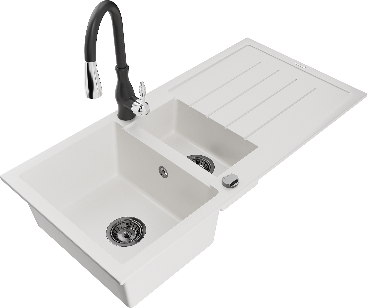 Mexen Andres évier en granit 1,5 bac avec égouttoir et robinet de cuisine Savita, blanc - 6515-20-672601-70