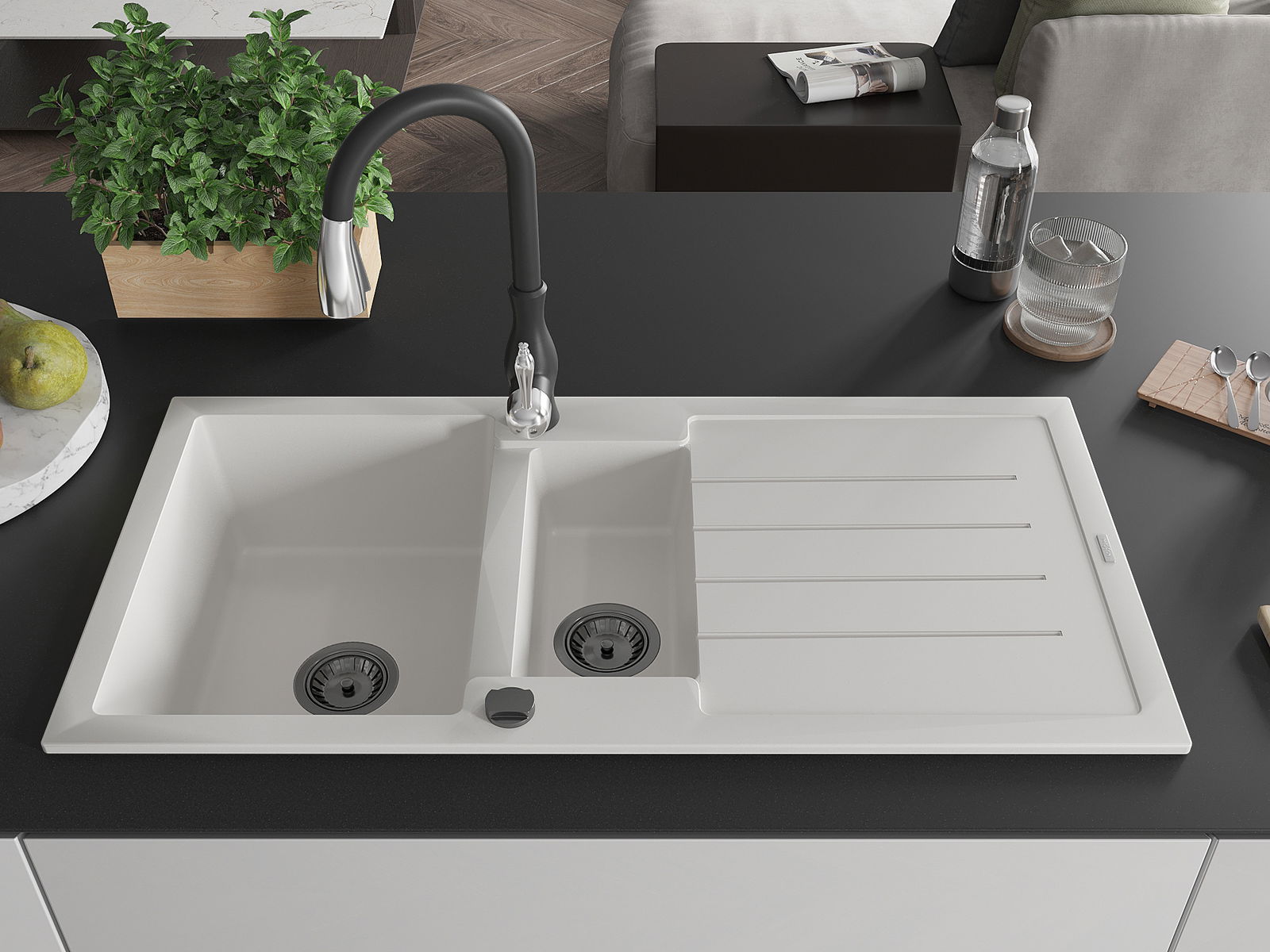 L'évier se distingue par une résistance exceptionnelle aux hautes températures et à leurs changements soudains, ce qui évite toute déformation même sous l'effet prolongé de l'eau chaude.