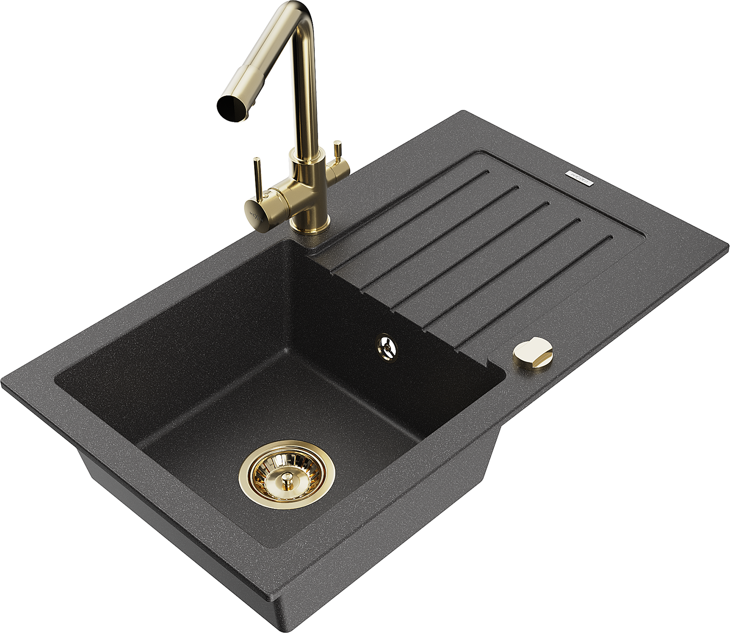 Mexen Pablo évier en granit 1 bac avec égouttoir et robinet de cuisine Duero, noir moucheté - 6510-76-671600-50