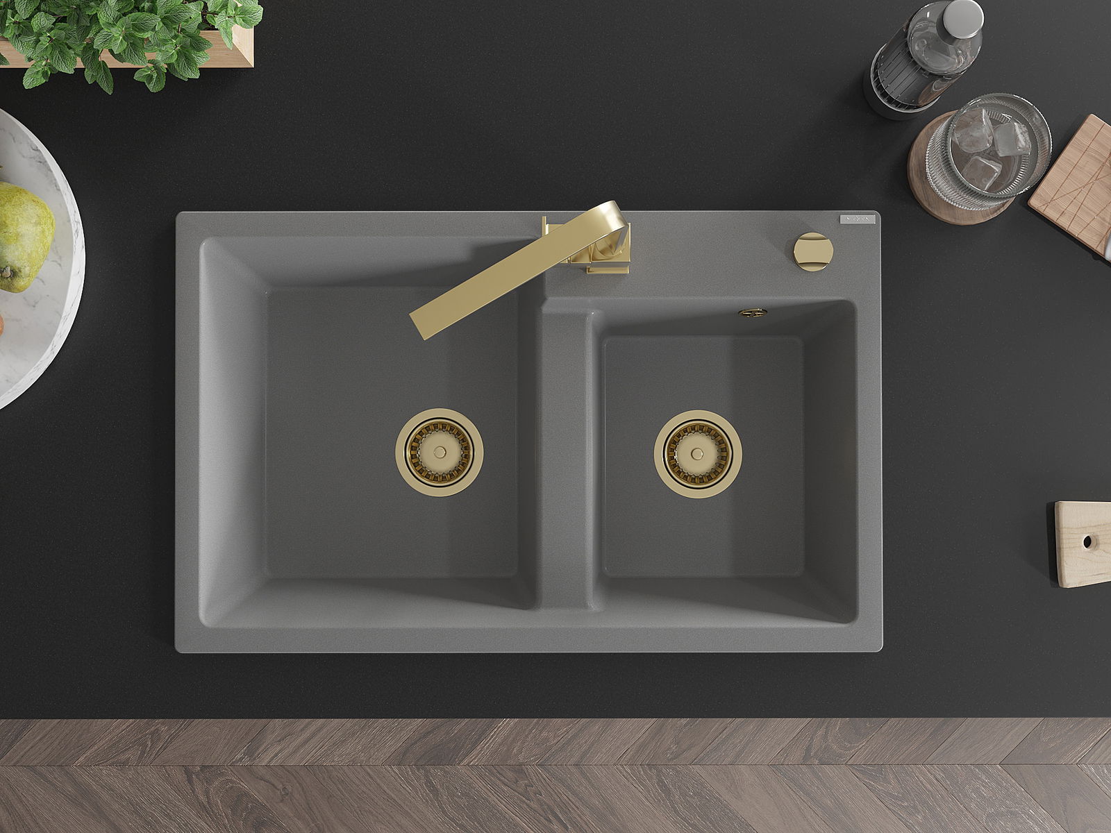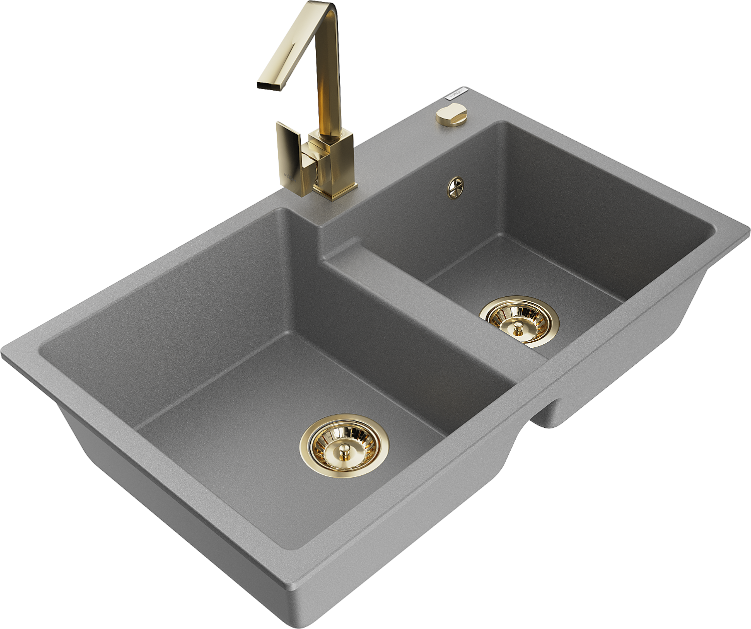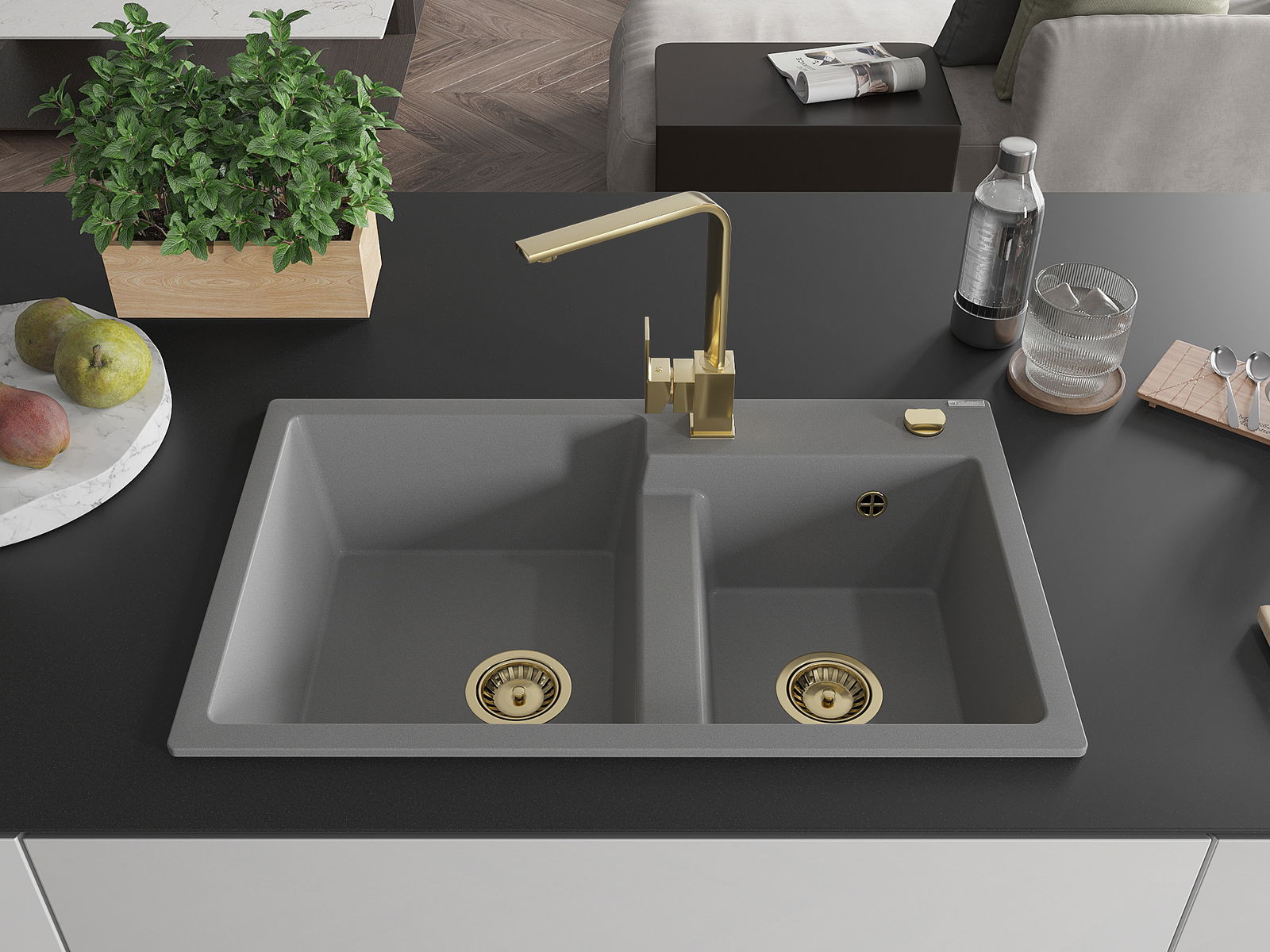 Mexen Tomas évier en granit 2 bacs avec mitigeur de cuisine Rita, gris - 6516-71-670300-50