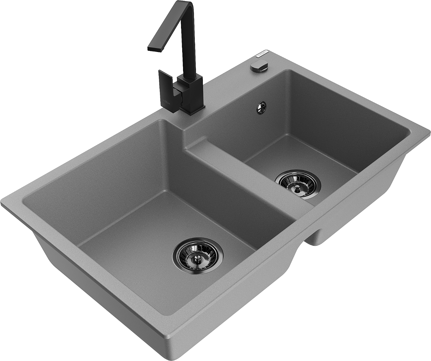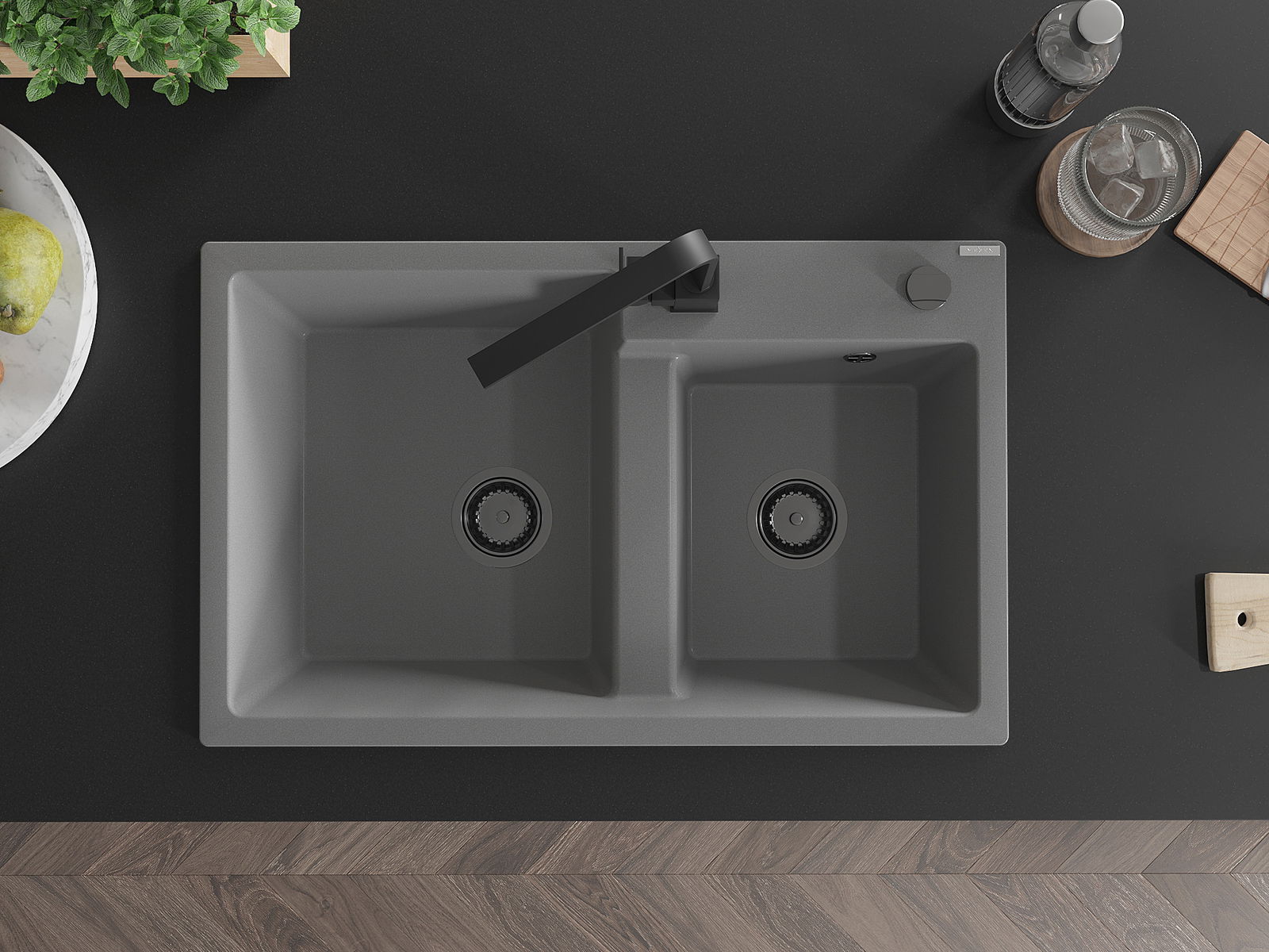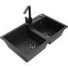 Mexen Tomas évier en granit à 2 bacs avec robinet de cuisine Rita, gris - 6516-71-670300-70-B