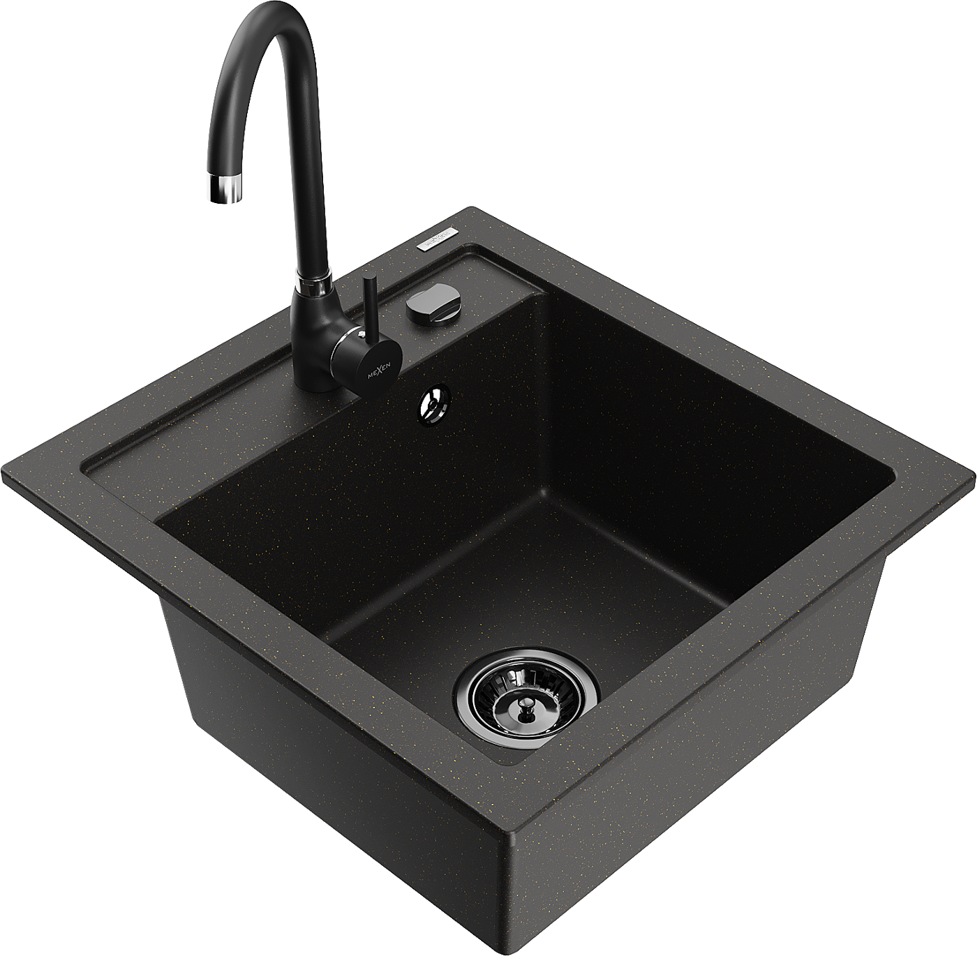 Mexen Vito évier en granit à 1 bac avec robinet de cuisine Telma, noir/or métallisé - 6503-75-670200-70-B