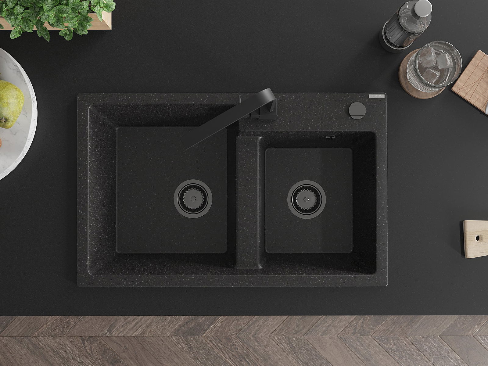 L'évier a un trou sous-meulé de 35 mm de diamètre à percer soi-même. Il peut être utilisé, entre autres, pour installer un distributeur de liquide, ce qui éliminera la présence de bouteilles en plastique dans la cuisine et lui donnera une finition élégante.