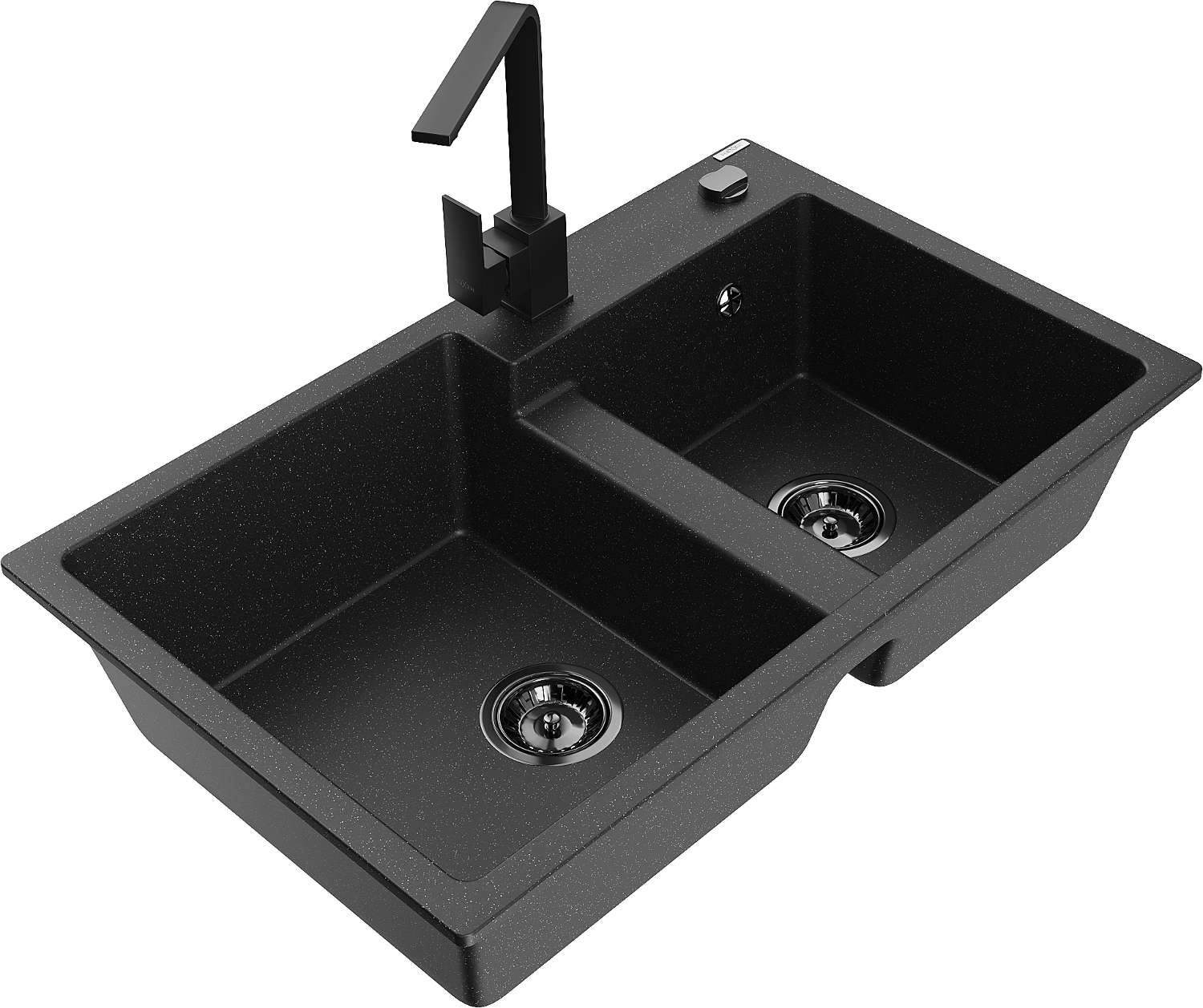 Mexen Tomas évier en granit à 2 bacs avec mitigeur de cuisine Rita, noir/métallique argenté - 6516-73-670300-70-B