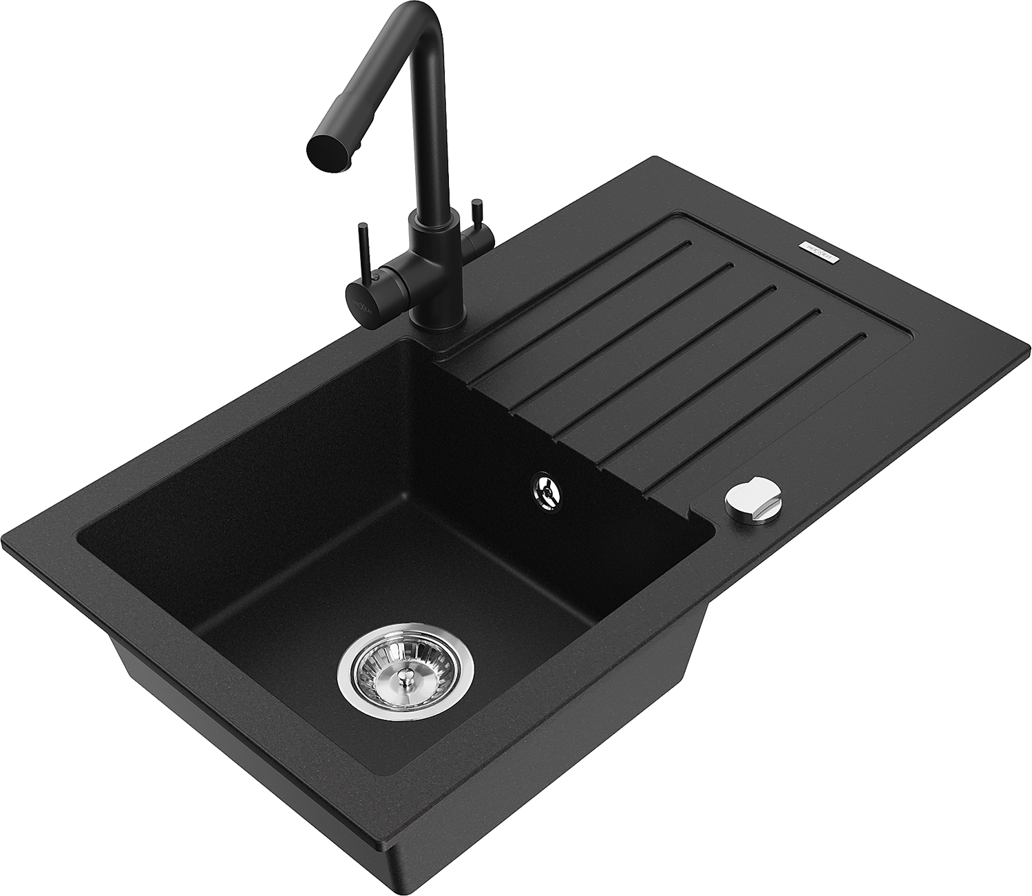 Mexen Pablo évier en granit 1 bac avec égouttoir et mitigeur de cuisine Duero, noir - 6510-77-671600-70