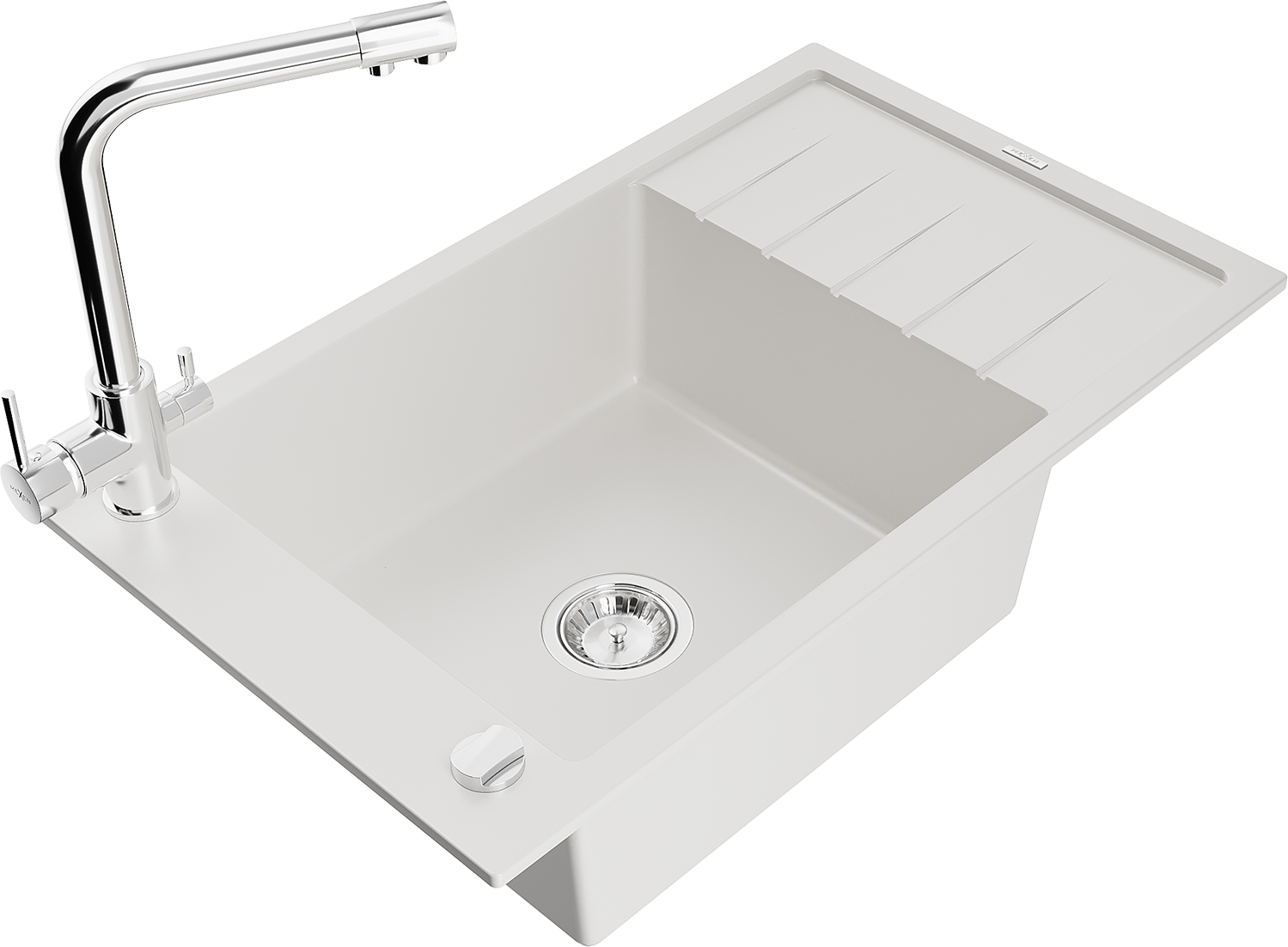 Mexen Elias évier de cuisine en granit à 1 bac avec égouttoir et robinet de cuisine Duero, blanc - 6511-20-671600-00