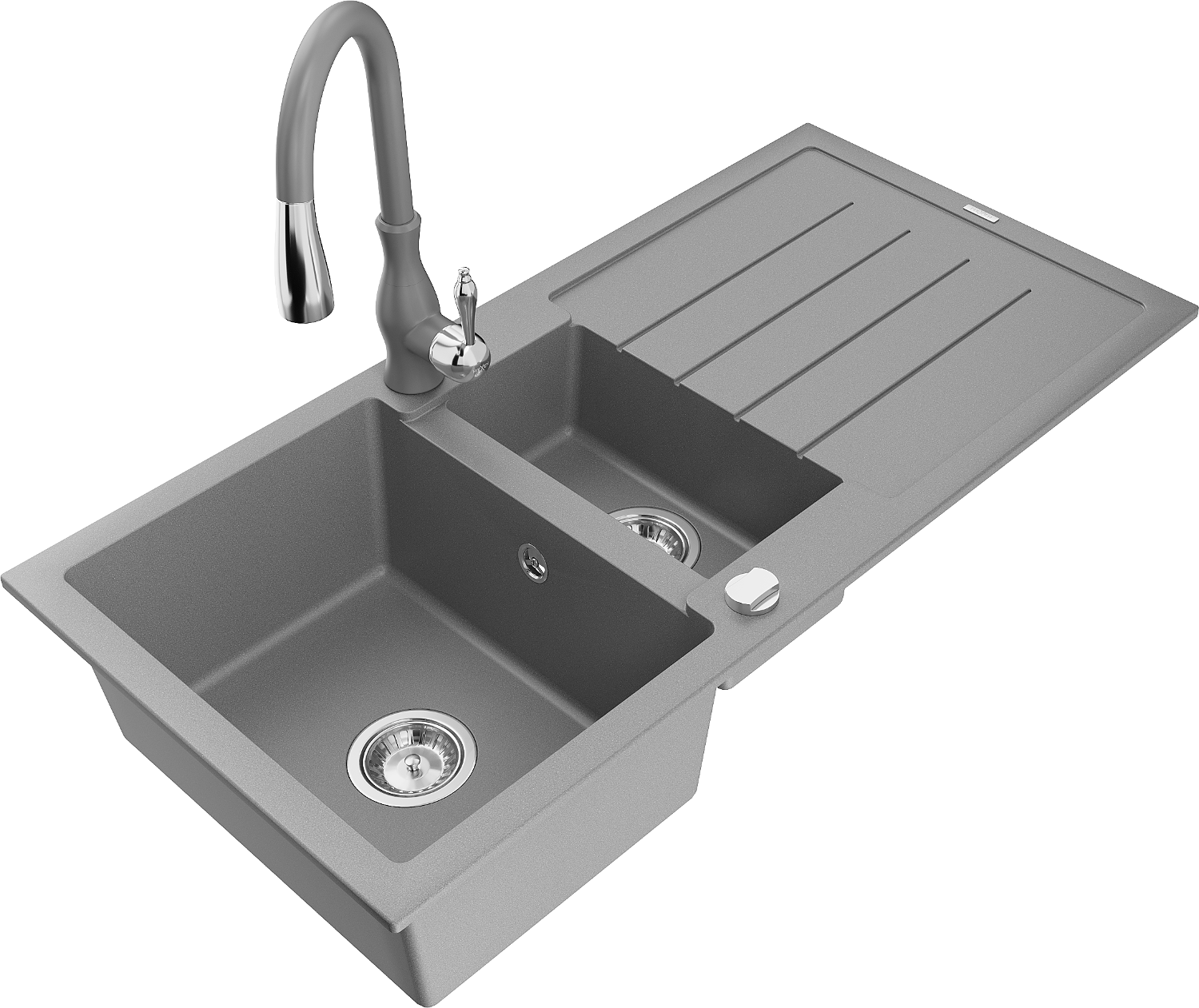 Mexen Andres évier en granit 1,5 bac avec égouttoir et robinet de cuisine Savita, gris - 6515-71-672601-71