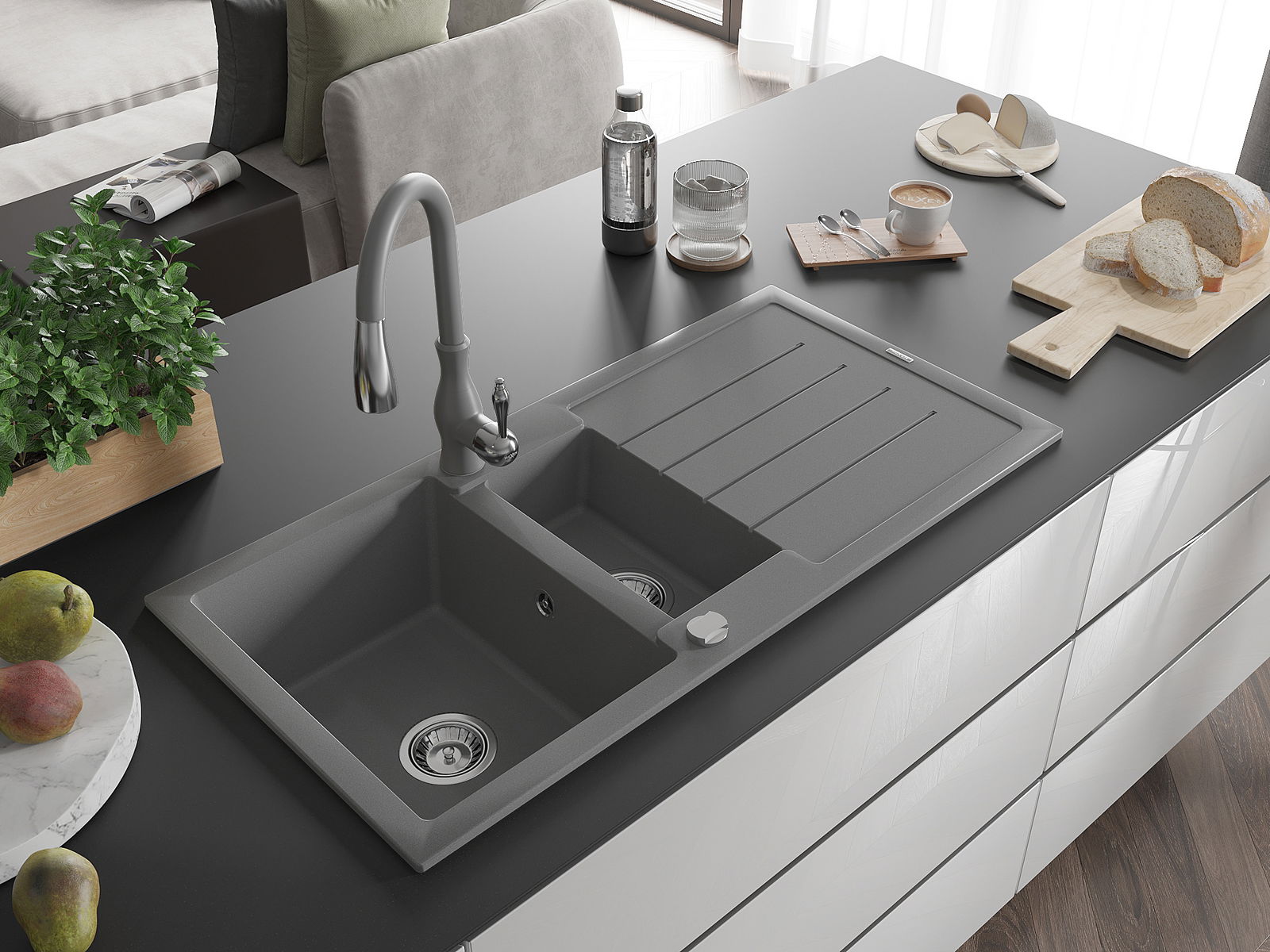 L'évier a été fabriqué en granit de haute qualité. Il constitue un complément élégant et surtout pratique à toute cuisine, quel que soit son style. La haute qualité et la durabilité du granit garantissent une utilisation pendant de nombreuses années.