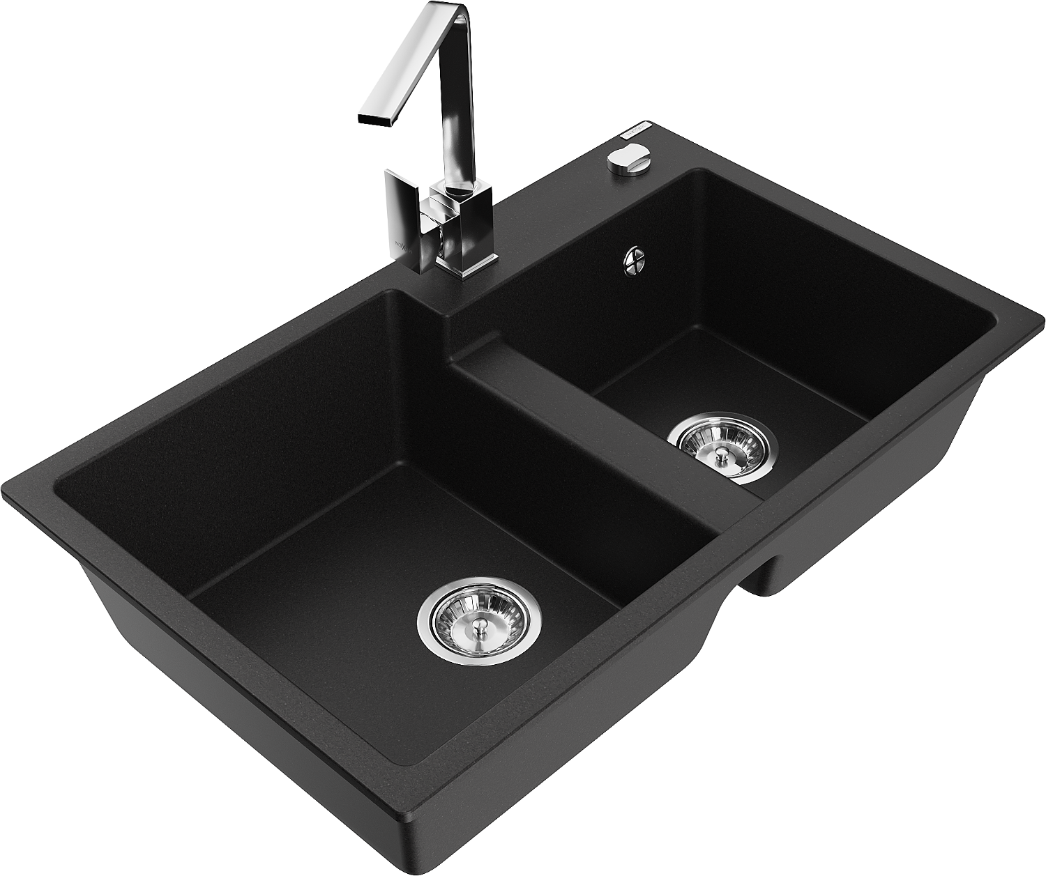 Mexen Tomas évier en granit à 2 bacs avec mitigeur de cuisine Rita, noir - 6516-77-670300-00