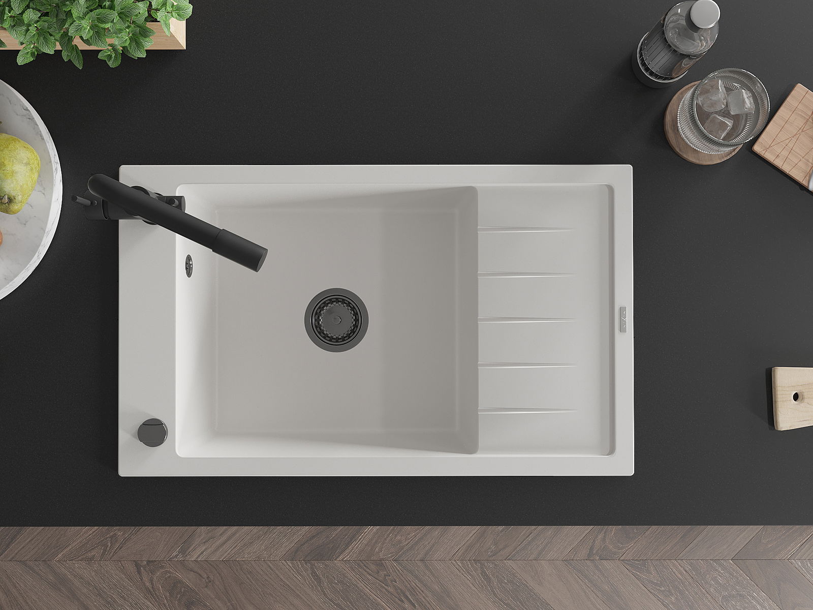 L'évier a été fabriqué en granit de haute qualité. Il constitue un complément élégant et surtout pratique à toute cuisine, quel que soit son style. La haute qualité et la durabilité du granit garantissent une utilisation pendant de nombreuses années.