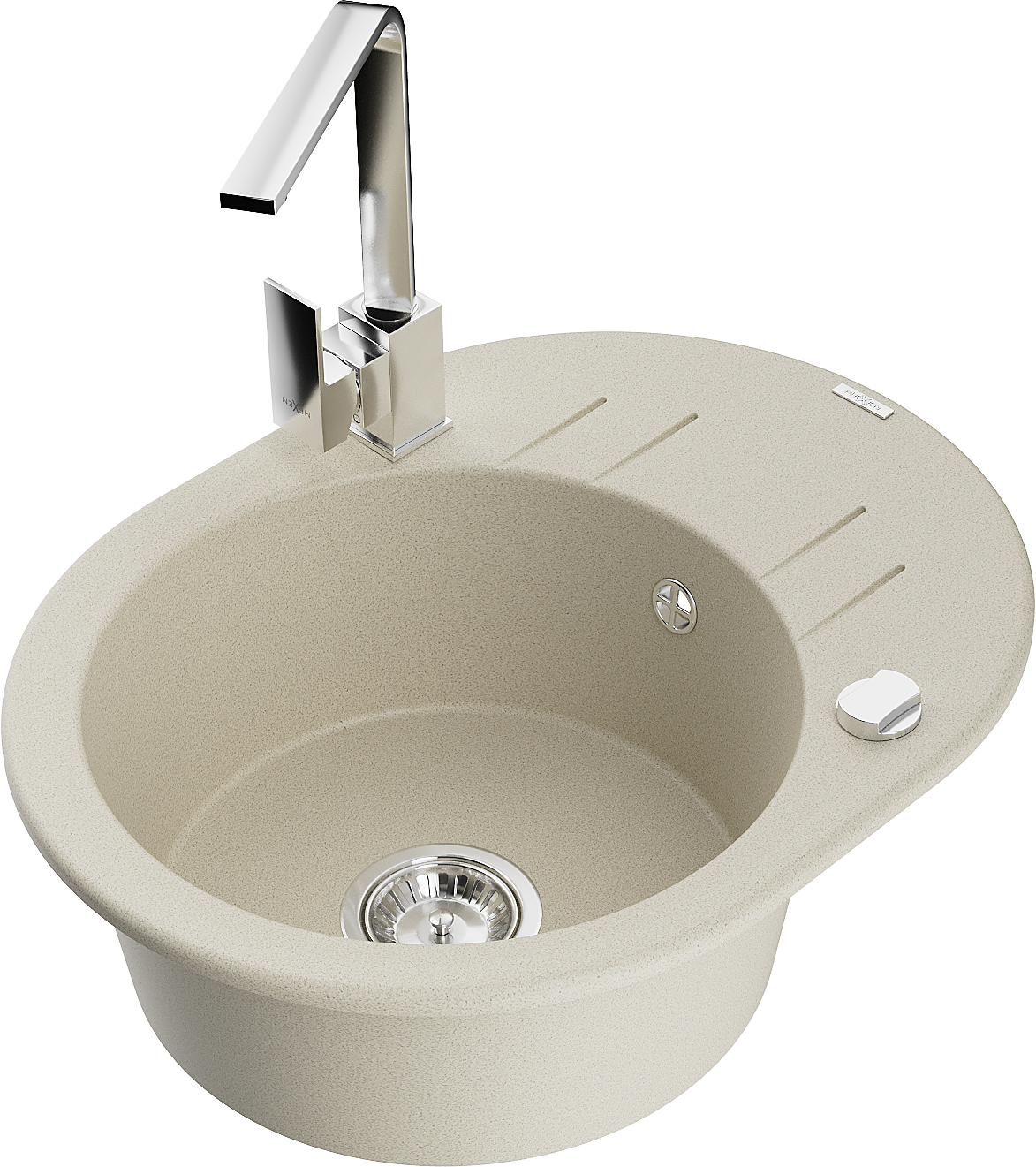 Mexen Kevin évier en granit 1-bac avec égouttoir et robinet de cuisine Rita, beige - 6517-69-670300-00