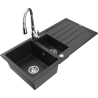 Mexen Andres évier en granit 1,5 bac avec égouttoir et robinet de cuisine Savita, noir - 6515-77-672601-00