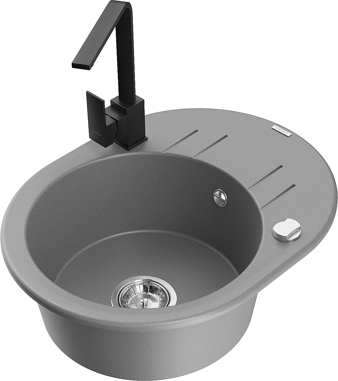 Mexen Kevin évier de cuisine en granit 1 bac avec égouttoir et robinet de cuisine Rita, gris - 6517-71-670300-70