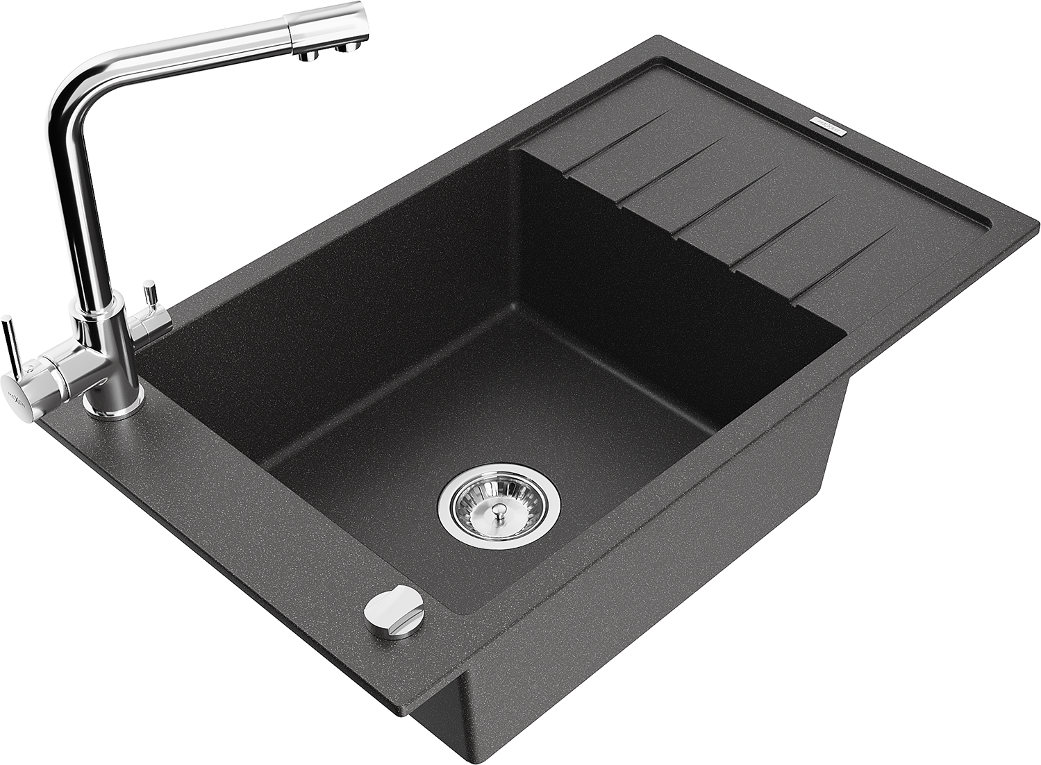 Mexen Elias évier de cuisine en granit 1 bac avec égouttoir et robinet de cuisine Duero, noir moucheté - 6511-76-671600-00