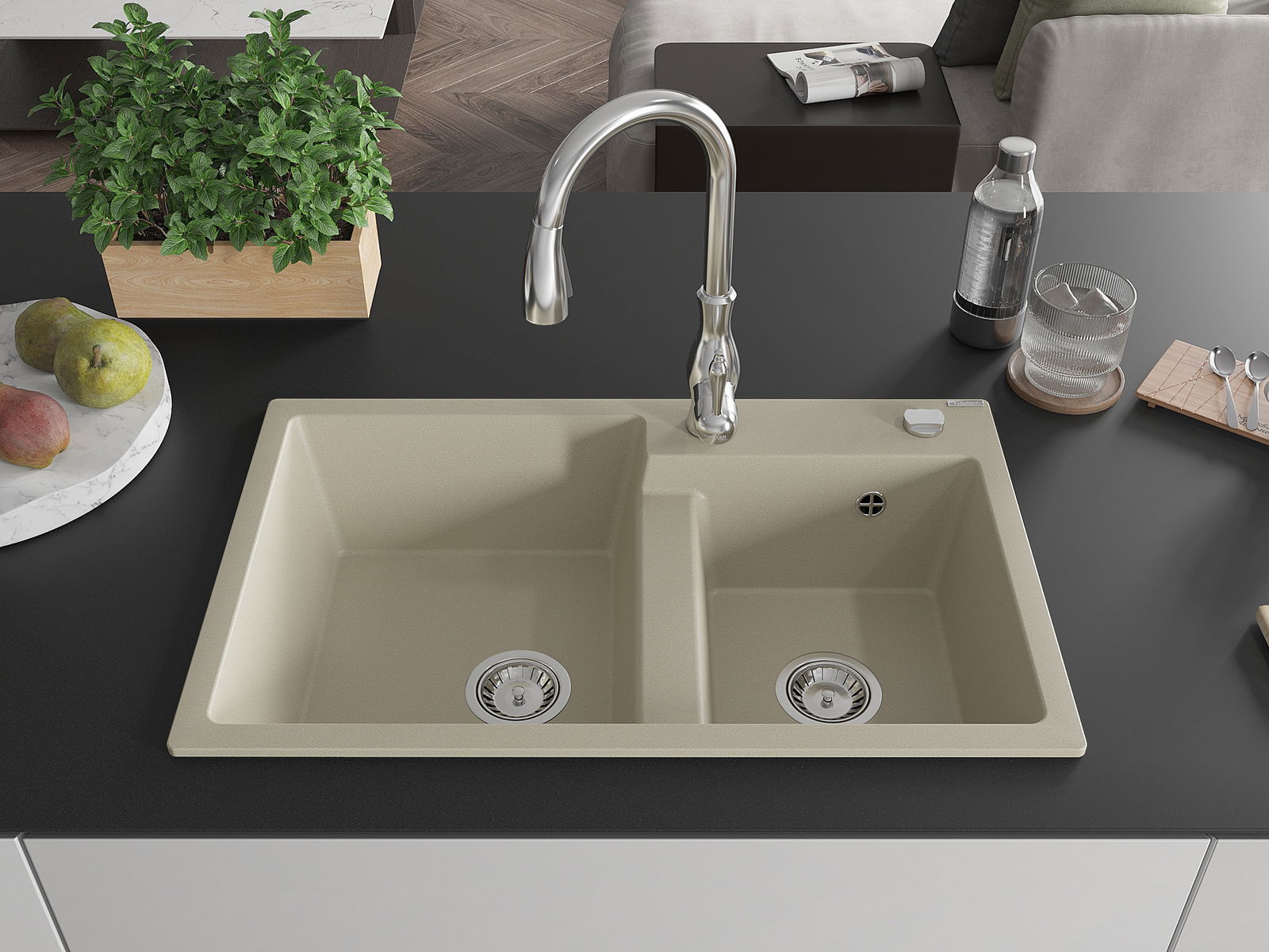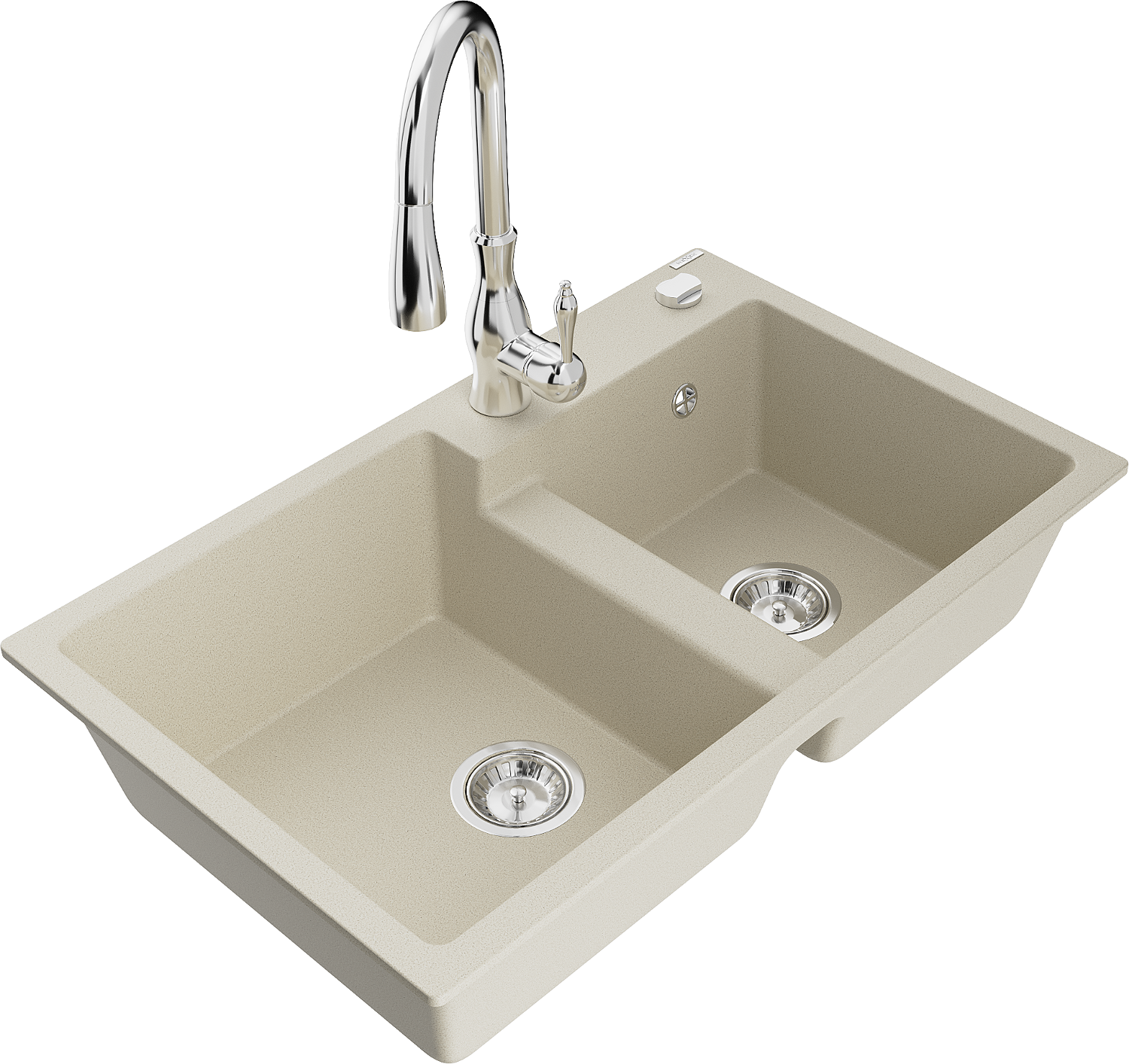 Mexen Tomas évier en granit 2 bacs avec robinet de cuisine Savita, beige - 6516-69-672601-00