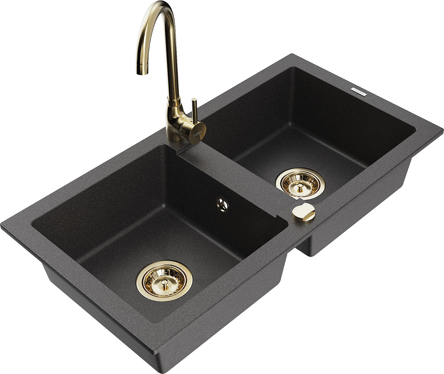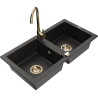 Mexen Mario évier en granit 2 bacs avec robinet de cuisine Telma, noir moucheté - 6504-76-670200-50
