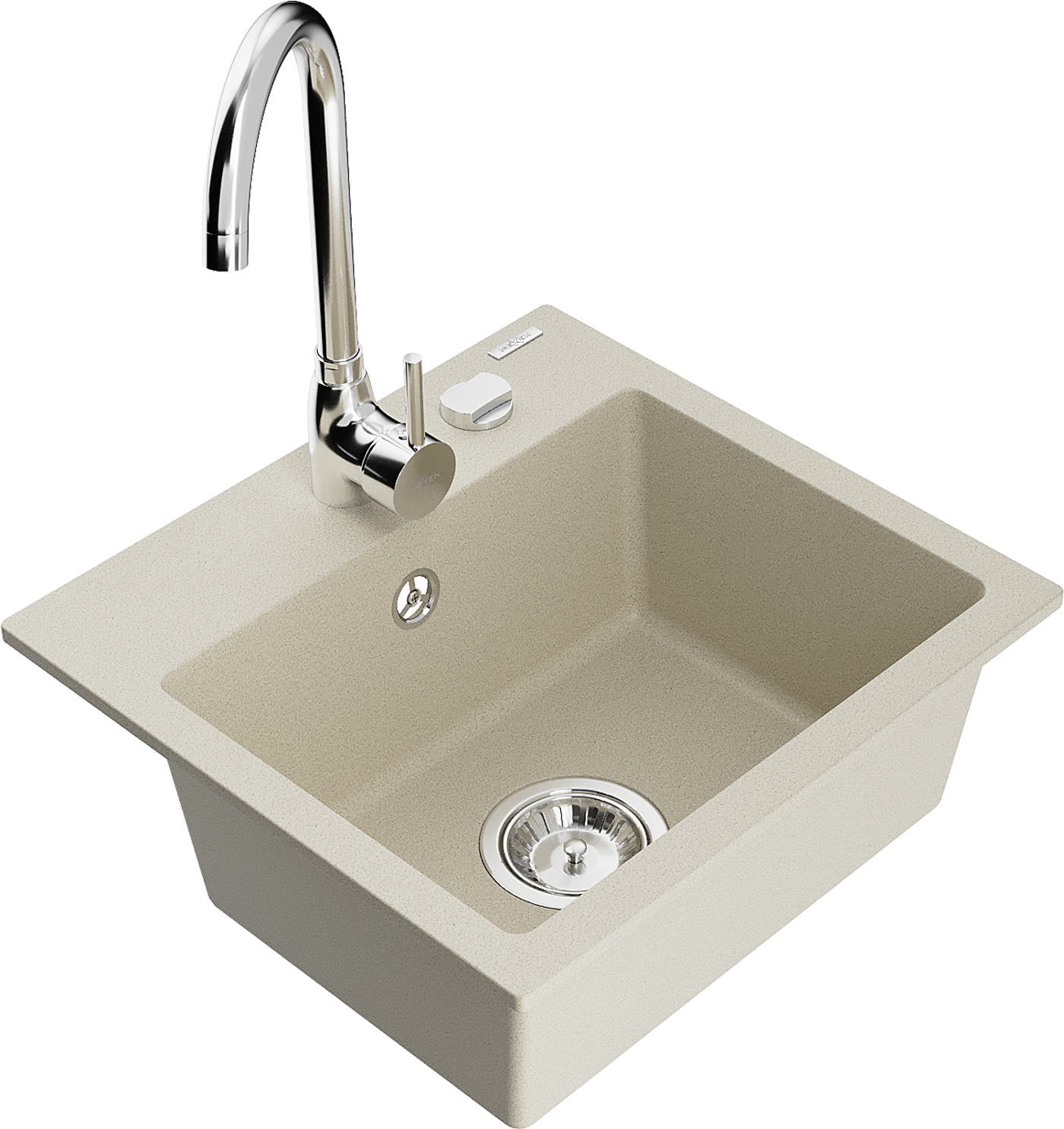 Mexen Milo évier en granit 1 bac avec robinet de cuisine Telma, beige - 6505-69-670200-00