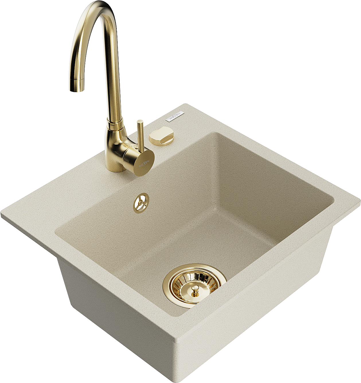 Mexen Milo évier en granit 1 bac avec robinet de cuisine Telma, beige - 6505-69-670200-50