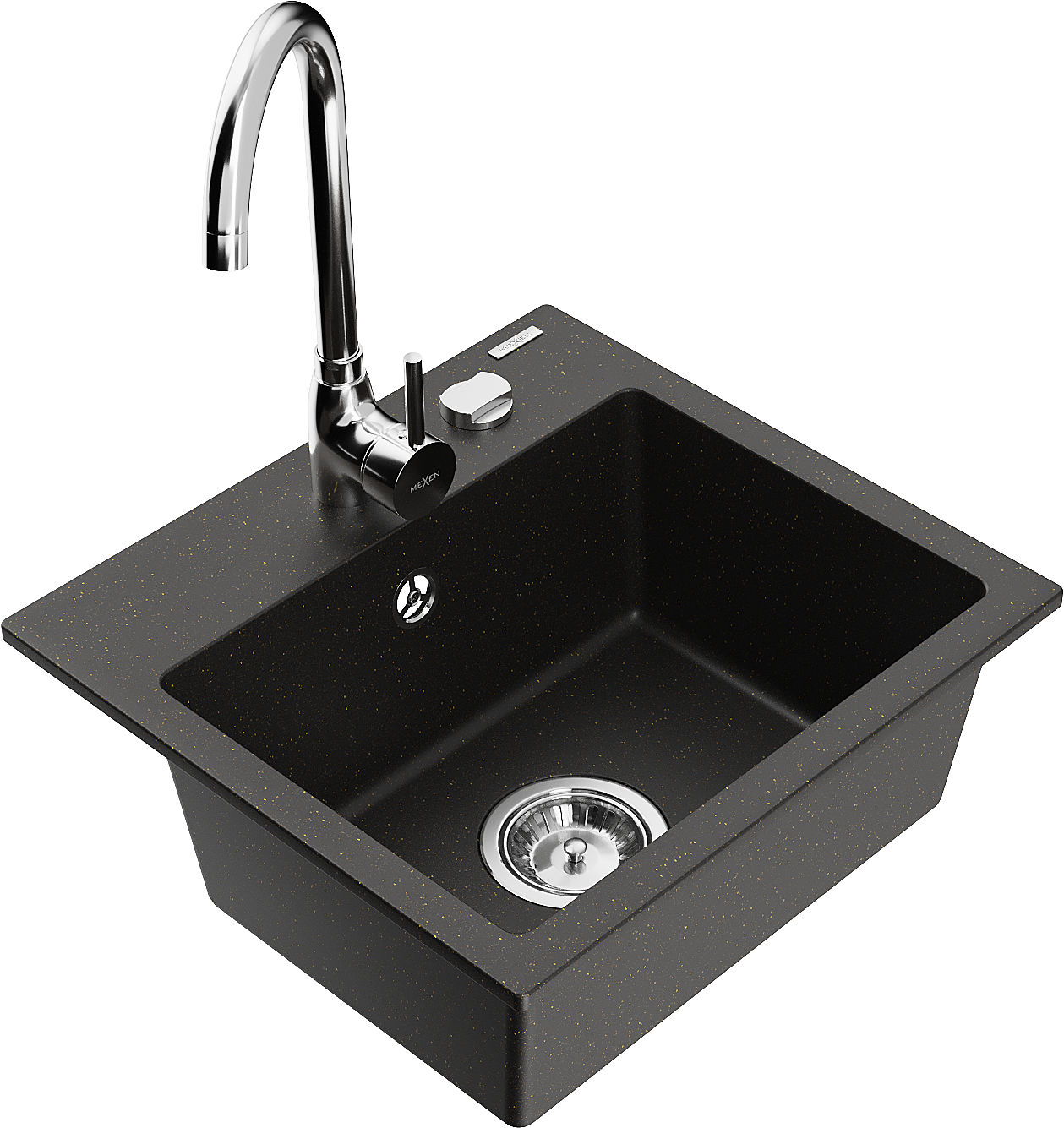 Mexen Milo évier en granit 1-bassin avec robinet de cuisine Telma, noir/doré - 6505-75-670200-00