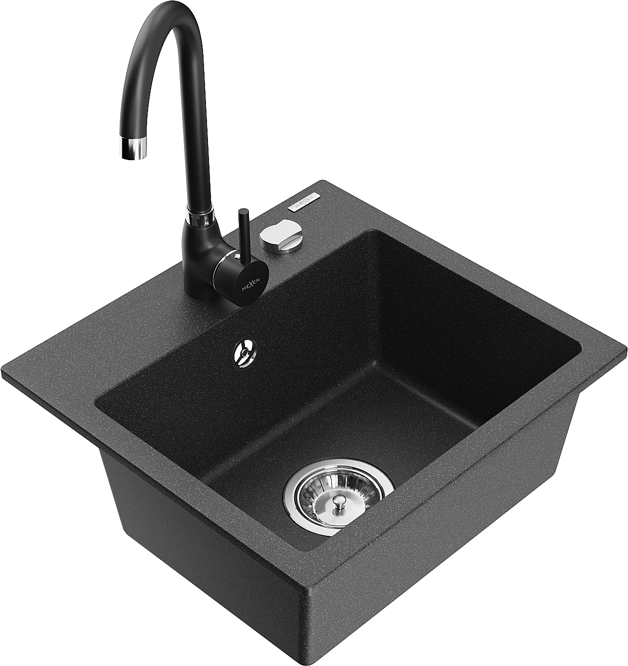 Mexen Milo évier en granit 1 bac avec robinet de cuisine Telma, noir moucheté - 6505-76-670200-70