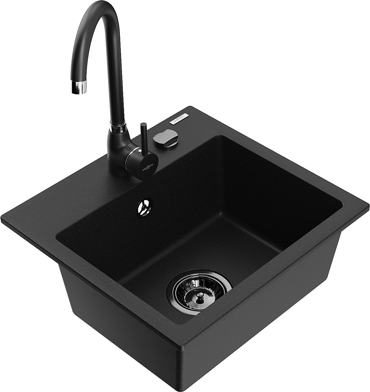 Mexen Milo évier en granit 1 bac avec robinet de cuisine Telma, noir - 6505-77-670200-70-B