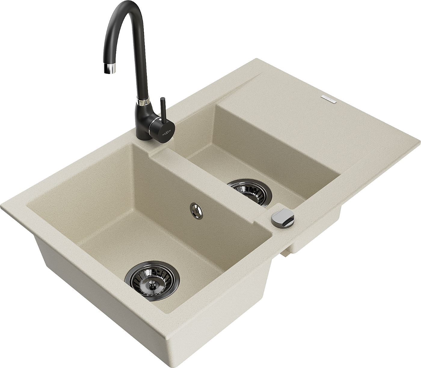 Mexen Gaspar évier en granit 1,5-bac avec égouttoir et robinet de cuisine Telma, beige - 6507-69-670200-70