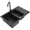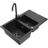 Mexen Gaspar évier en granit 1,5 bac avec égouttoir et robinet de cuisine Telma, gris - 6507-71-670200-70-B