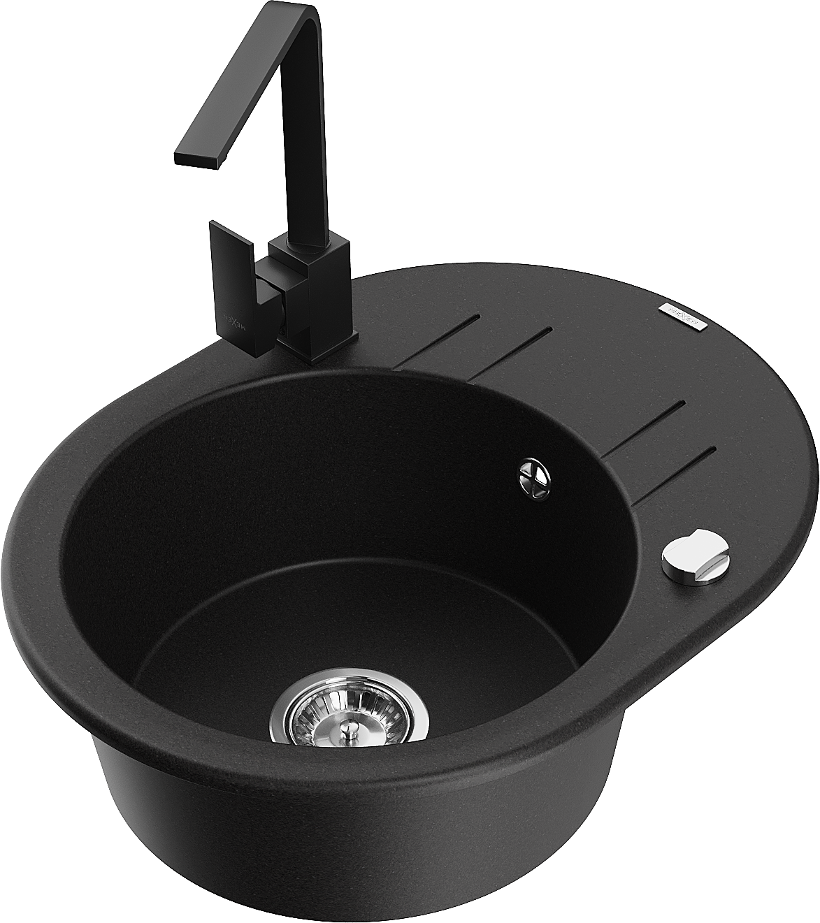 Mexen Kevin évier en granit 1 bac avec égouttoir et robinet de cuisine Rita, noir - 6517-77-670300-70
