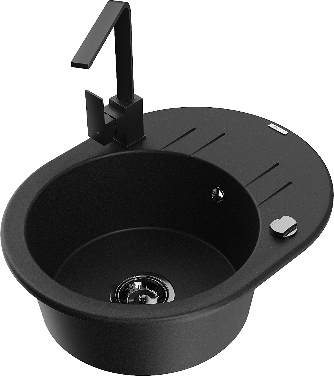 Mexen Kevin évier de cuisine en granit à 1 bac avec égouttoir et robinet Rita, noir - 6517-77-670300-70-B