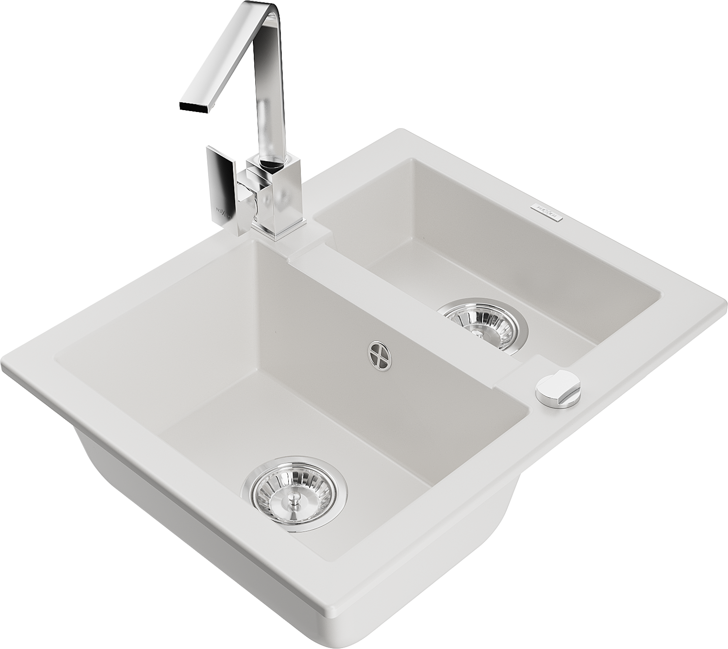 Mexen Carlos évier en granit 1,5-bac avec mitigeur de cuisine Rita, blanc - 6518-20-670300-00