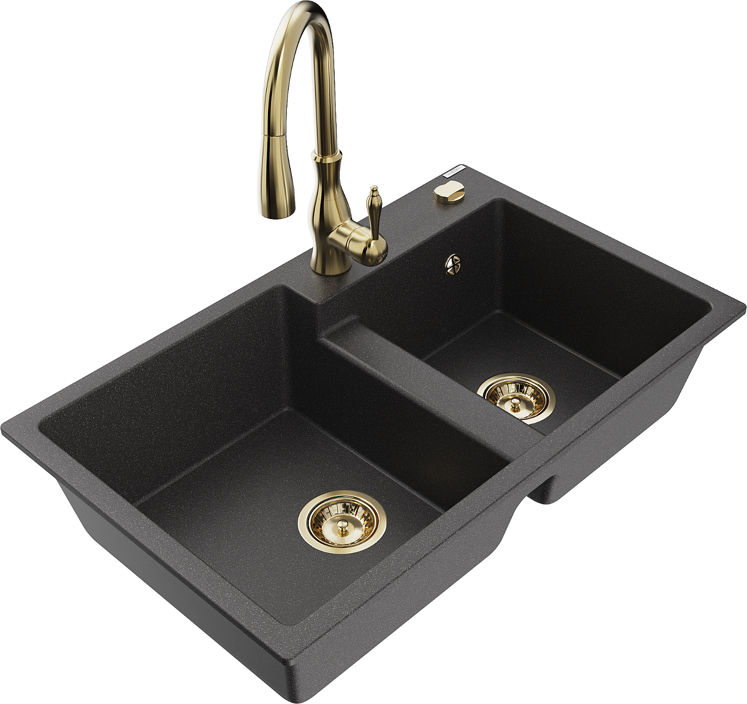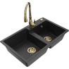 Mexen Tomas évier en granit à 2 bacs avec mitigeur de cuisine Savita, noir tacheté - 6516-76-672601-50