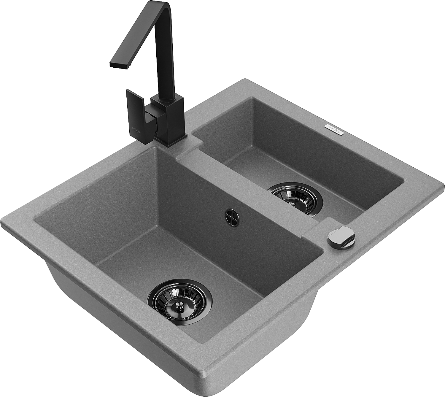 Mexen Carlos évier de cuisine en granit 1,5 bac avec robinet de cuisine Rita, gris - 6518-71-670300-70-B