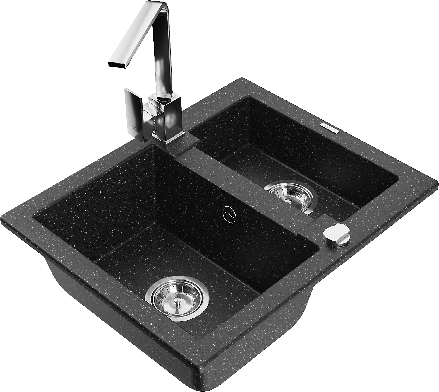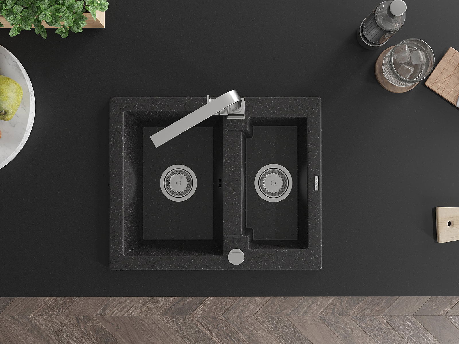 Mexen Carlos évier de cuisine en granit 1,5 bac avec robinet Rita, noir/argent métallique - 6518-73-670300-00