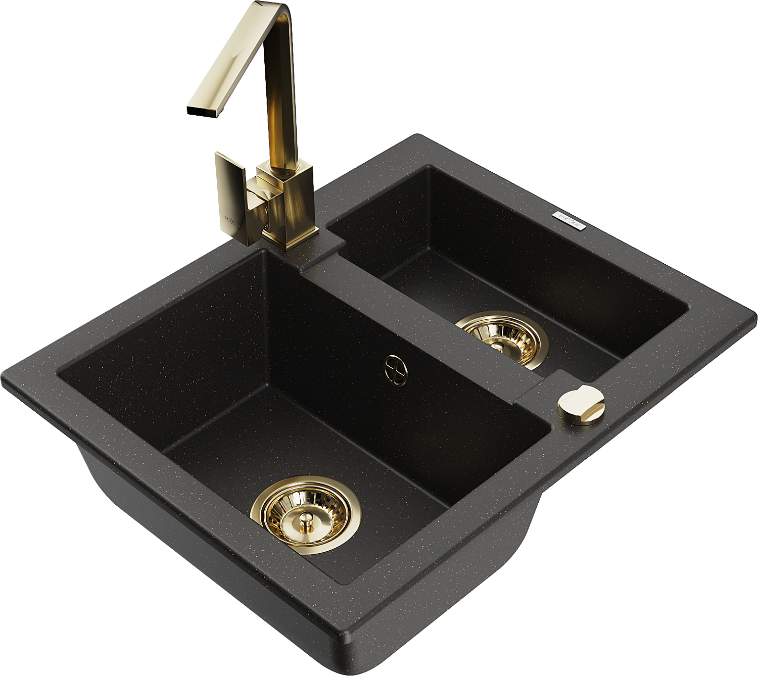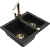 Mexen Carlos évier en granit 1,5 bac avec robinet de cuisine Rita, noir/or métallisé - 6518-75-670300-50